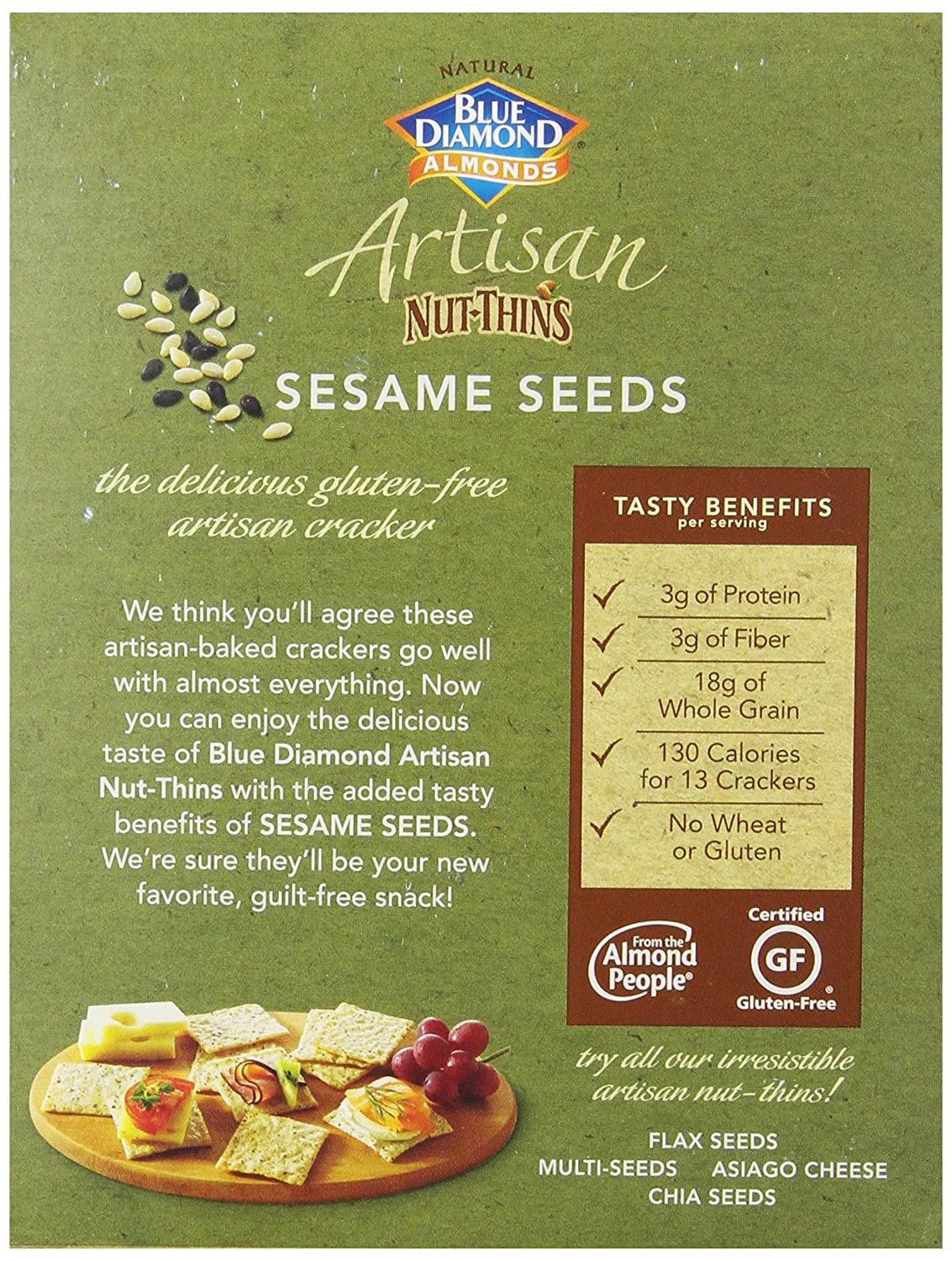 Blue Diamond Almonds Artisan Nut Thins Cracker Crisps, Sesame Seeds, 4.25 Ounce