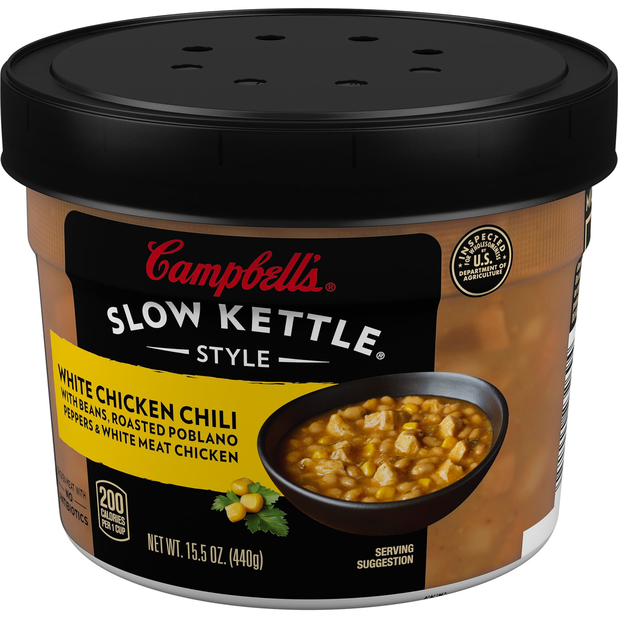 Campbell’s Slow Kettle Style White Chicken Chili with Beans, Roasted Poblano Peppers & White Meat Chicken is hearty with a kick you’ll love. White chicken meat with no antibiotics, pea beans and roasted poblano chili peppers are simmered to perfection creating a chili that’s bursting with flavor. Add a little spice to your life all from the comfort of your own home.