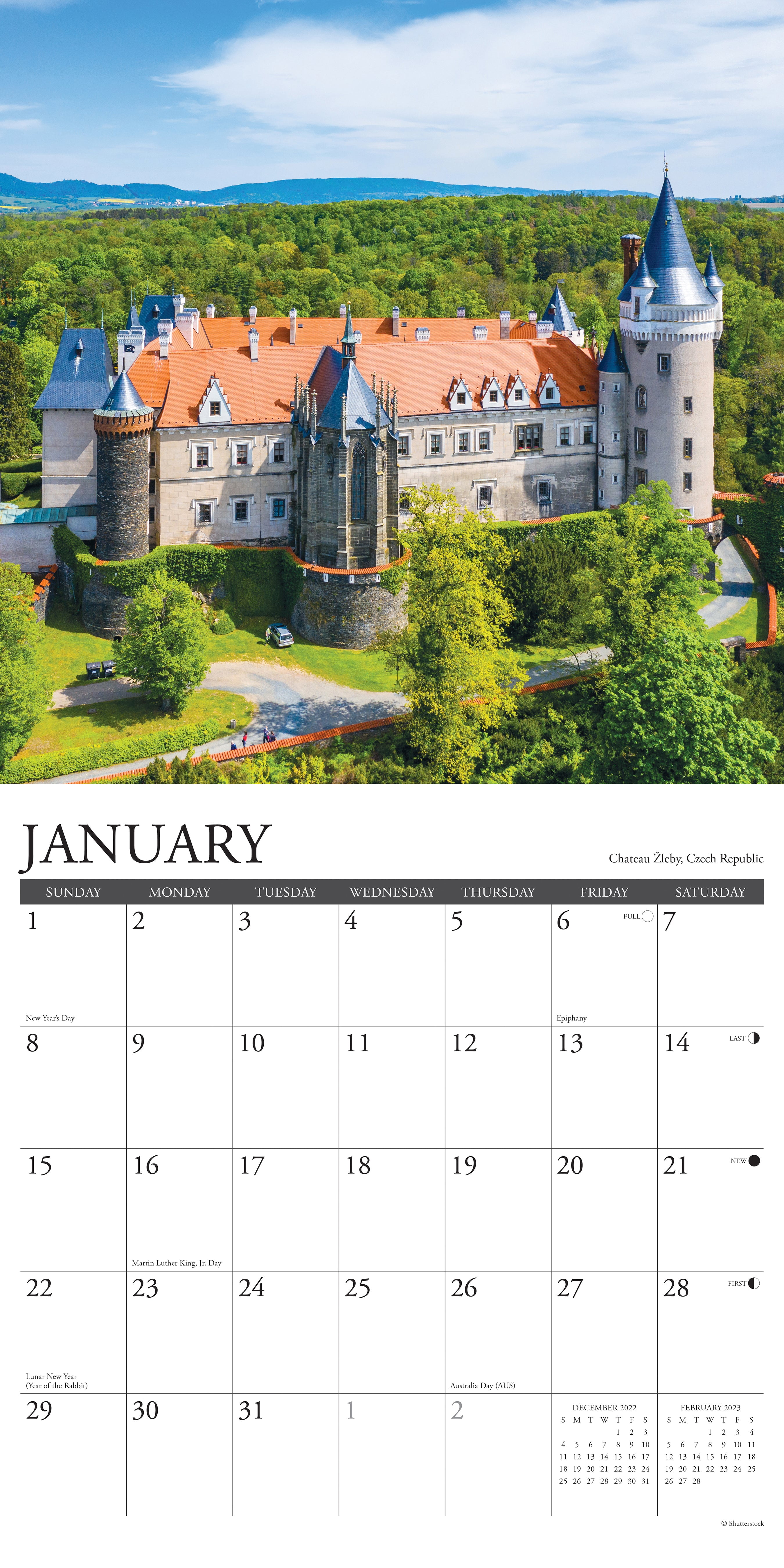 Marvel the medieval majesty of these magnificent castles across Europe and beyond. Art and architecture, fairy tales and history come together to celebrate the golden age of the Renaissance. Printed with soy-based inks on FSC certified paper, this 12" x 12" wall calendar features large monthly grids that offer ample room for jotting notes, along with six bonus months of July through December of 2022. Also includes moon phases (CST), standard U.S. and international holidays.