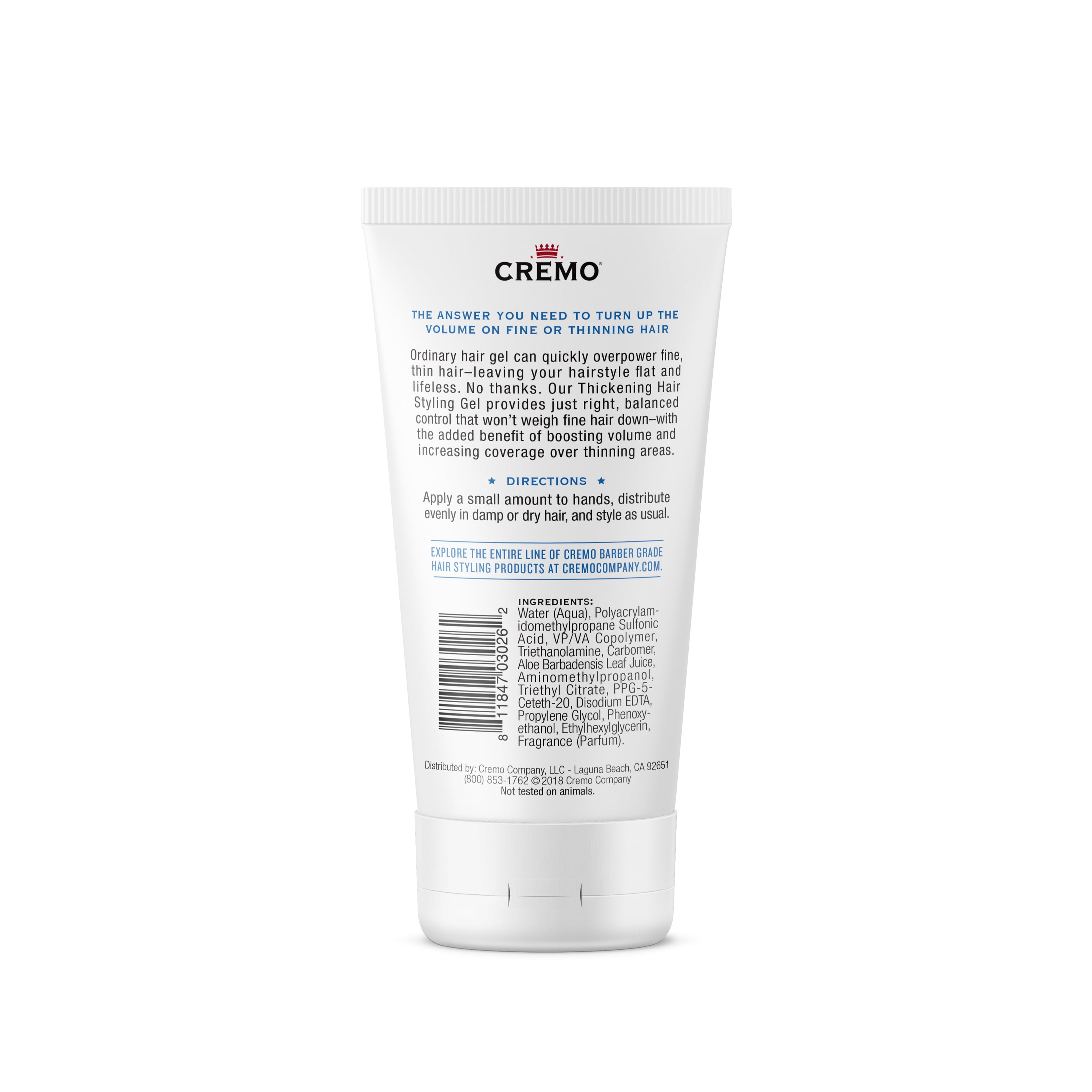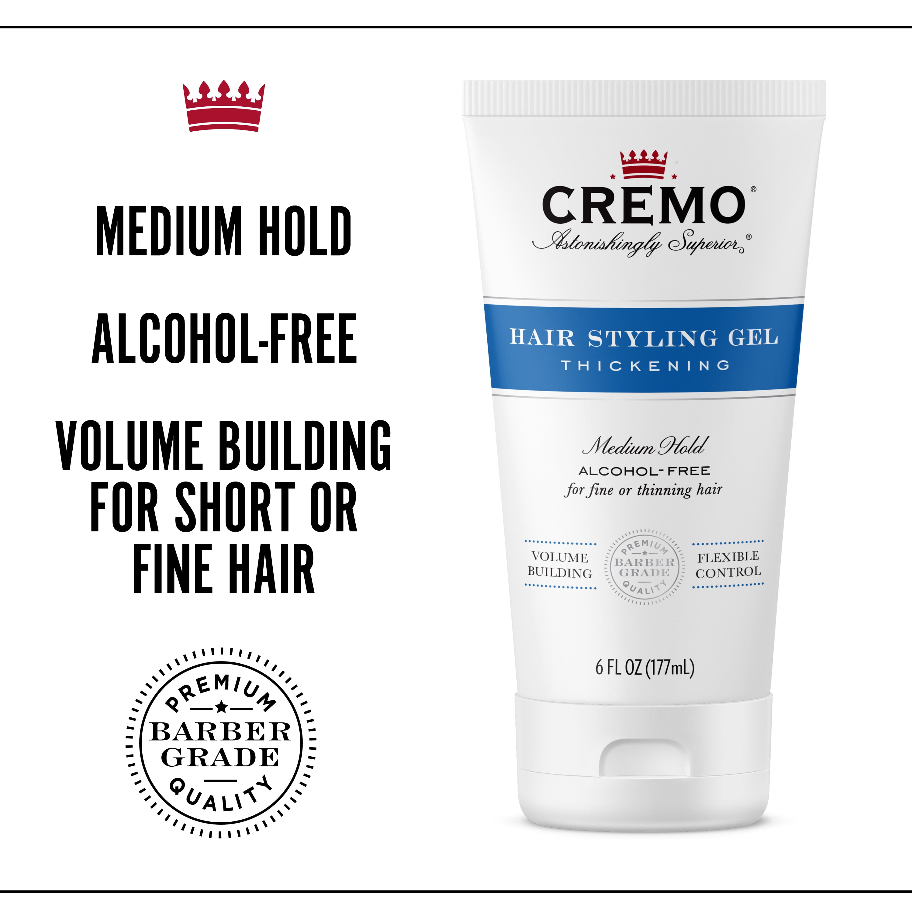 The answer you need to turn up the volume on fine or thinning hair. Ordinary hair gel can quickly overpower fine, thin hair – leaving your hairstyle flat and lifeless. No thanks. Our Thickening Hair Styling Gel provides just right, balanced control that won’t weigh fine hair down – with the added benefit of boosting volume and increasing coverage over thinning areas.Cremo Styling Gel Thickening 6oz Medium hold For fine or thinning hair Volume building and flexible control