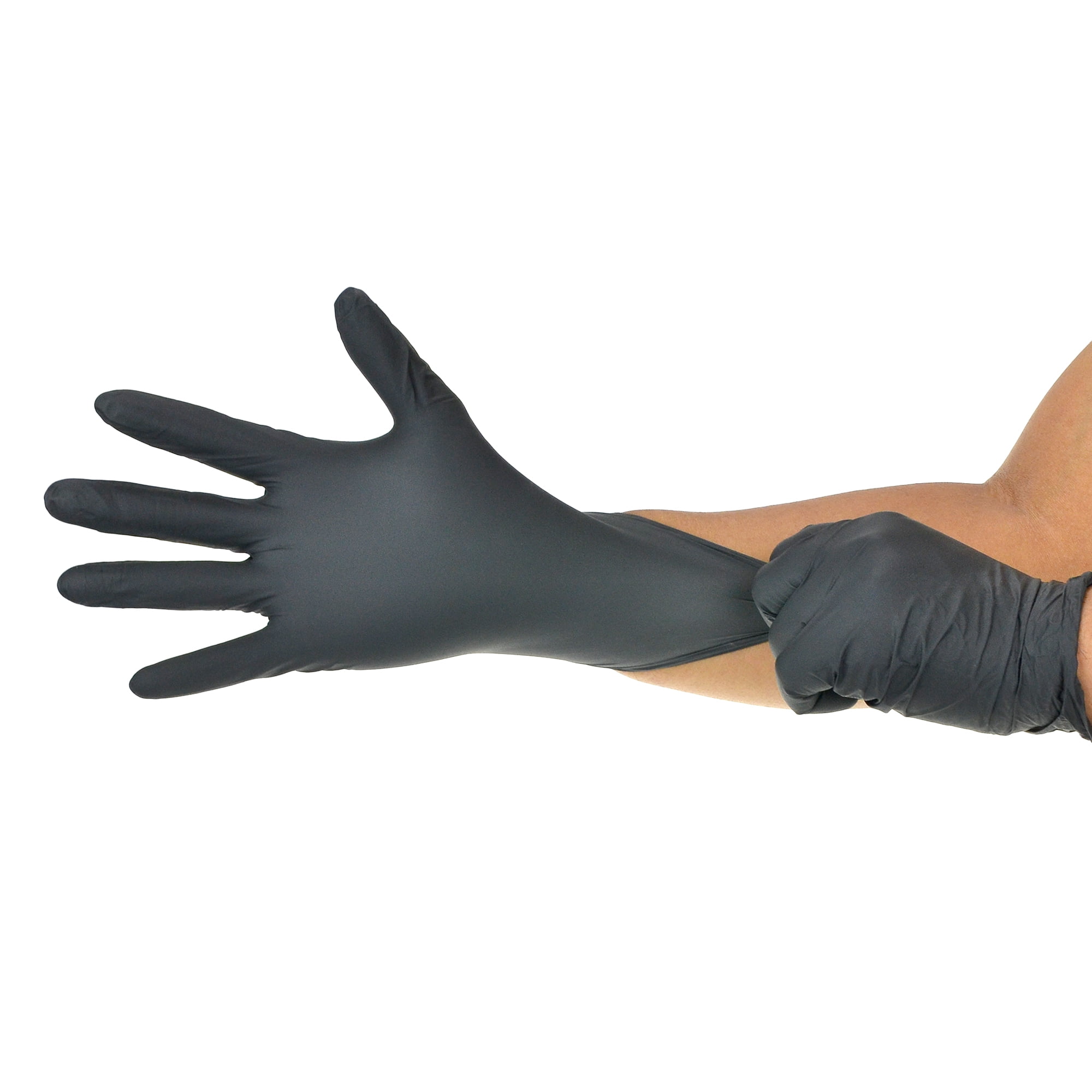 The advantage of these black nitrile gloves is that they provide quick visual cues, avoiding cross-contamination in laboratories and patient care areas. It also helps identify non-medical personnel who may be exposed to contaminants, patients or pathogens. Following Standard and Universal Precautions, our Nitrile Black Exam Gloves are less reactive to chemicals.