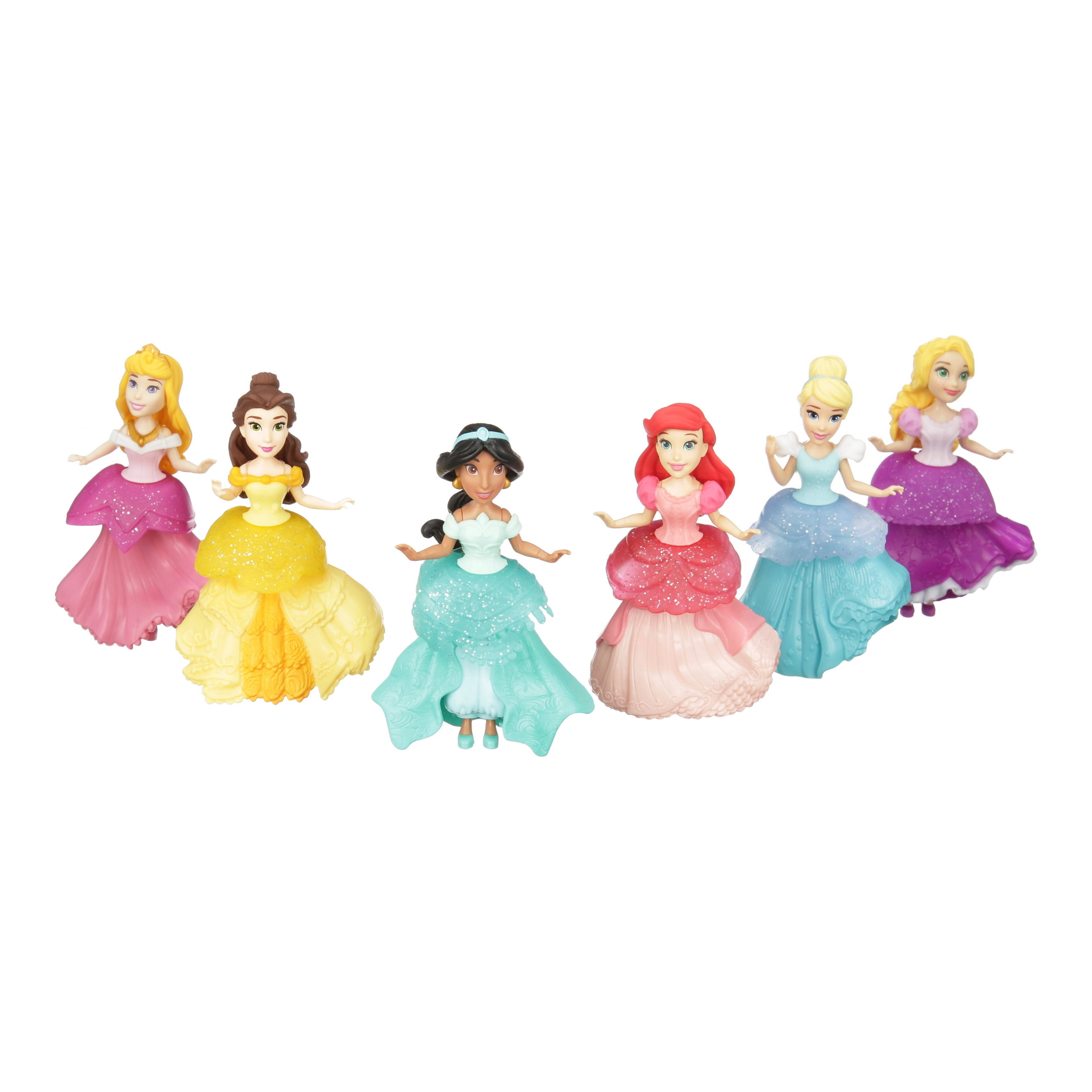The world of Disney Princess small dolls is getting a stylish upgrade with the Royal Clips dressing system! Made for little hands, these one-clip outfits are designed for quick, seamless fashion changes. This Disney Princess Rainbow Collection doll set features 6 favorite Disney characters in an adorable and collectible size: Ariel, Aurora, Belle, Cinderella, Jasmine, and Rapunzel. Kids will love to dress their favorite Disney Princess dolls in these one-clip fashions each doll comes with an iconic, movie-inspired outfit to dress her up in! Just open the Royal Clips dress and slide it onto the doll. These collectible dolls can sit or stand. Kids can collect all the Disney Princess with Royal Clips fashion dolls (each sold separately), and imagine dressing up their favorite characters for an enchanted evening or exciting adventure!Copyright Disney.Hasbro and all related terms are trademarks of Hasbro. Includes 6 dolls and 6 dresses.