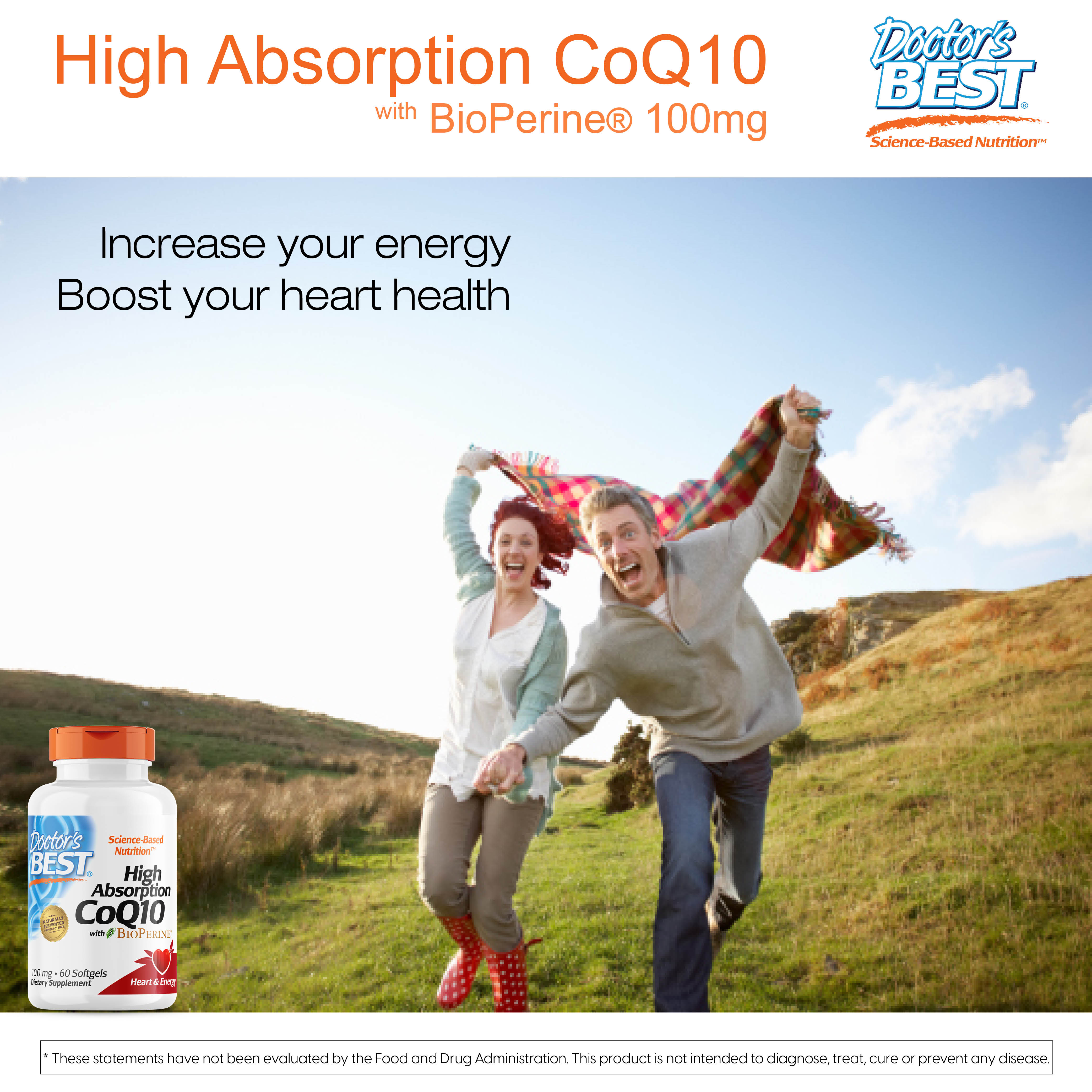 Doctor’s Best High Absorption CoQ10 contains pure coenzyme Q10 (Ubiquinone) plus BioPerin®. CoQ10 helps support heart function and helps promote energy production in the cells.* It is vital to the production of ATP (adenosine triphosphate), especially in the heart. Stress, free radicals, statin medications and aging can impact CoQ10 levels. CoQ10 is very important for the creation of energy, muscular contraction and the synthesis of protein.* Studies have shown that BioPerine® increases CoQ10 absorption.* At Doctor’s Best, we lead with science. Our products are backed by research and crafted using pure ingredients carefully sourced from around the globe. Since 1990, we have dedicated ourselves to providing highly effective nutritional supplements that enable you to live a healthier lifestyle. We want nothing more than to see you and your family thrive!