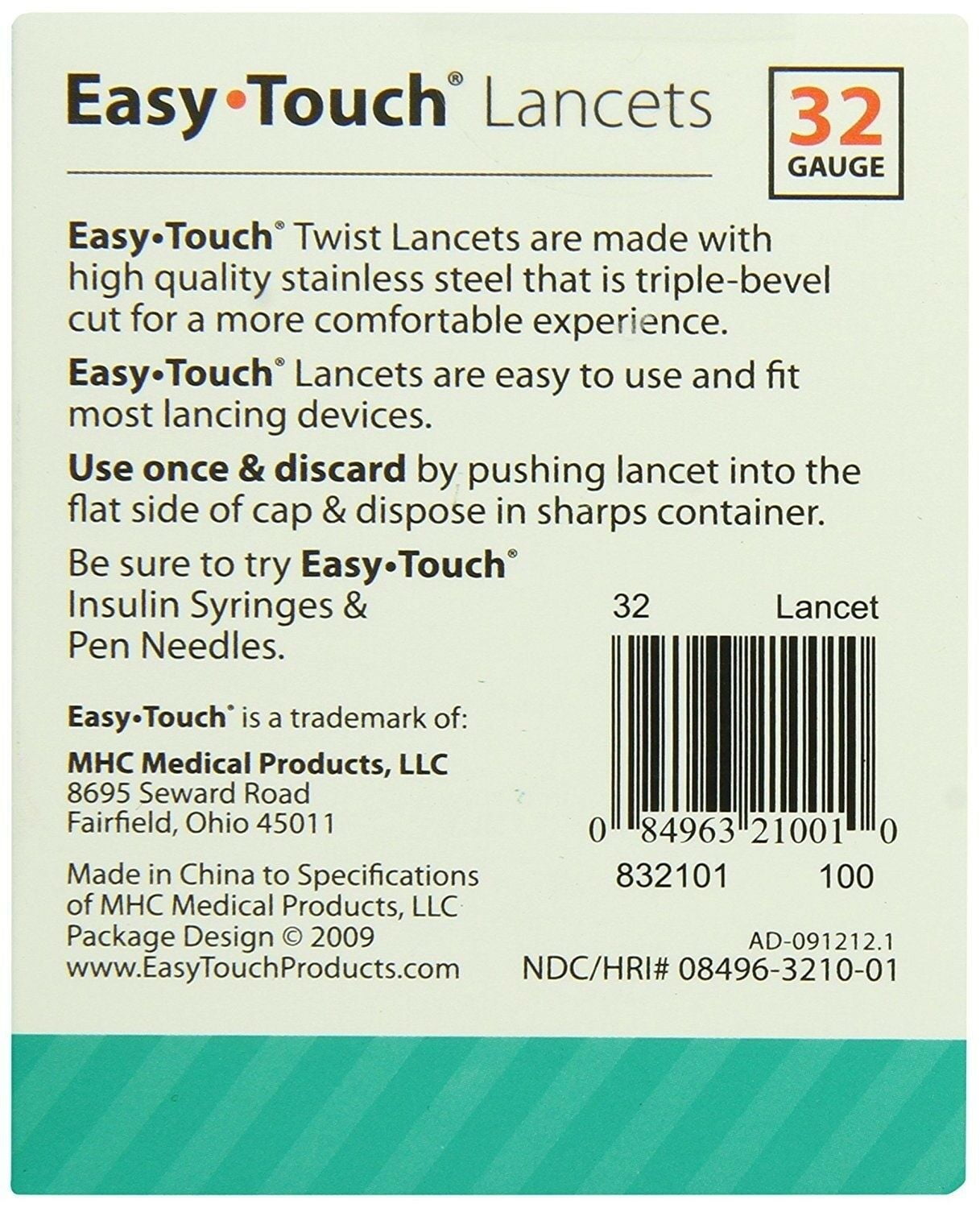 EasyTouch conventional twist lancet. Triple bevel cut. Long tapered tip. Color coded by gauge.
