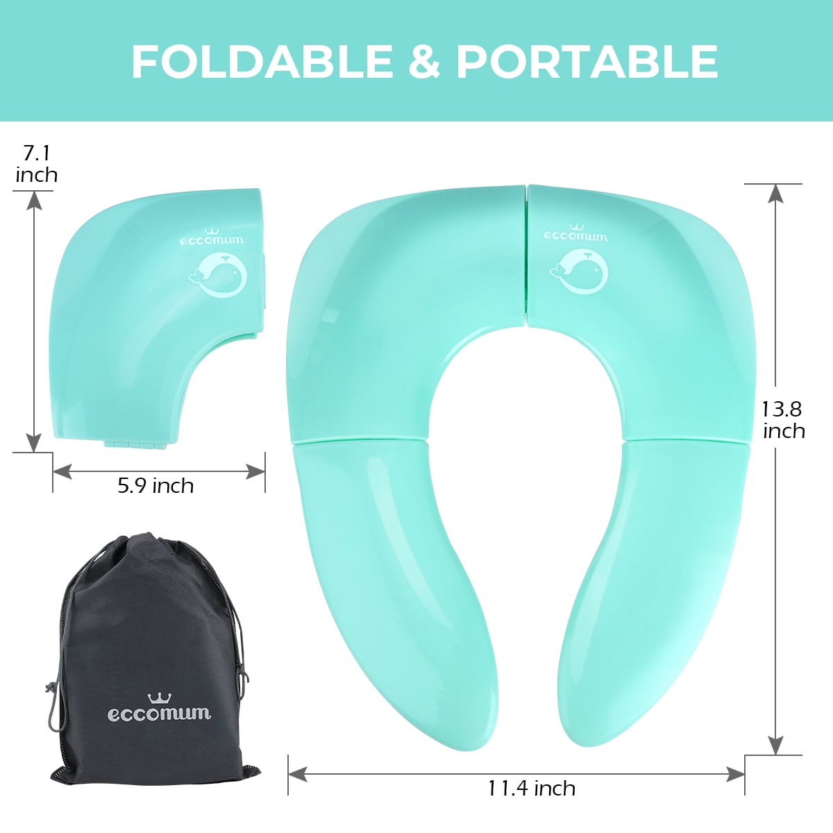 【Easy to Folding and Carry】The portable potty seat for toddler folds up to the pretty small size of 7.3”L x 5.9” W x 2” H and weighs just over half a pound. The convenient drawstring bag, it is perfect to carry around in your diaper bag, stroller bag or backpack.It is the ideal toilet seat for potty training.