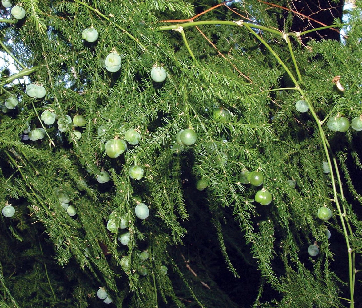 Asparagus setaceus, commonly known as Common Asparagus Fern, Lace Fern, Climbing Asparagus, or Ferny Asparagus, is a vine plant in the genus Asparagus. Despite its common name, the plant is not a true fern, but has leaves that resemble one. It is native to Southern Africa, and is grown elsewhere as an ornamental plant. Occurring from spring to autumn, the small greenish-white bell-shaped flowers are followed by small green berries, which turn black with maturity. Prefers morning sun or very bright indirect light. Water thoroughly when on the dry side.Fern Leaf Plumosus Asparagus Fern – 4" Pot- Easy to Grow Houseplant – Live Plant