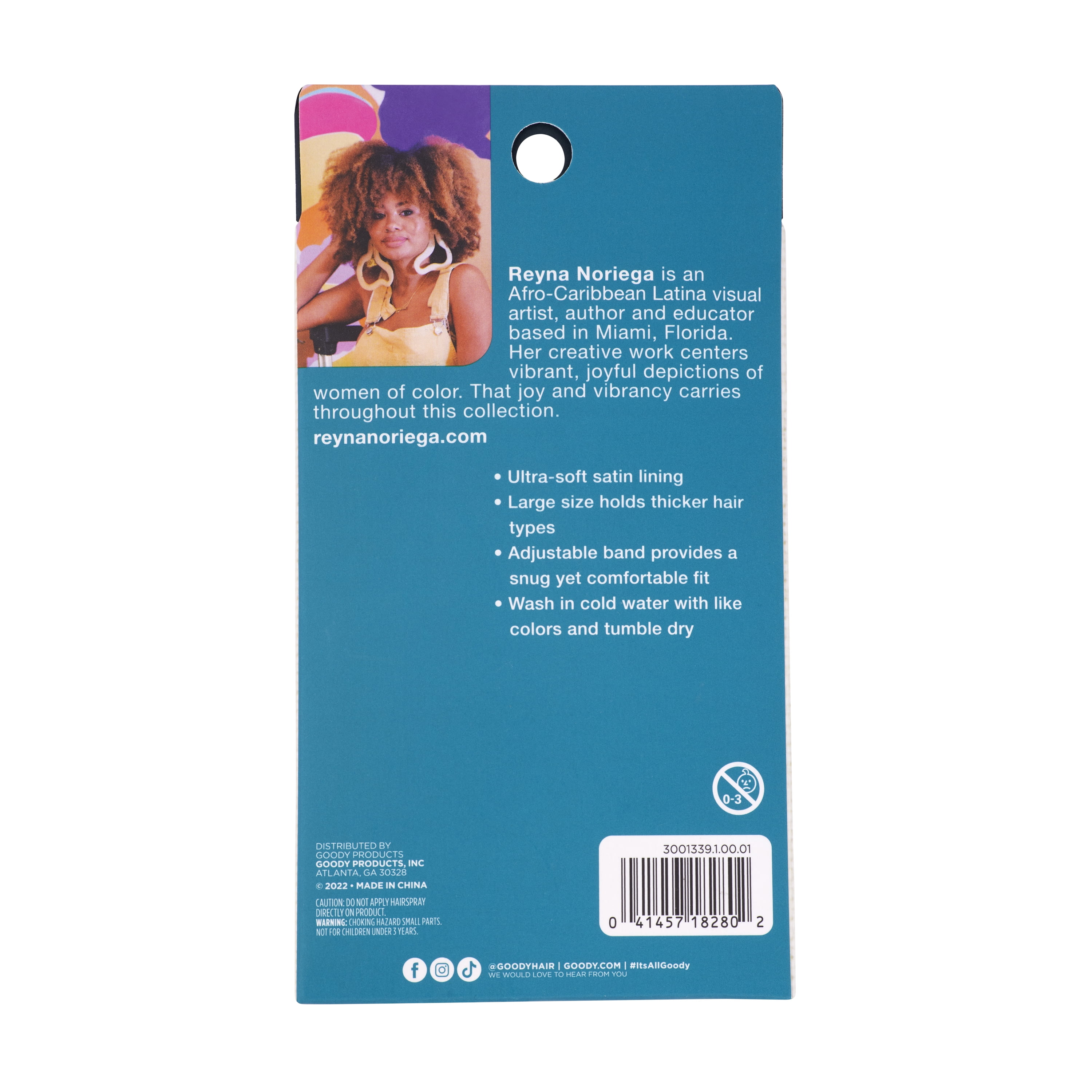 Goody Tru is a creative collaboration that honors the unique vision of some of today’s most compelling multi-cultural artists while also celebrating individuality and self-expression. These artists have come together with the most-loved hair accessory brand in the world to create a unique style narrative that’s all about embracing a brighter, bolder you. Only at Walmart! The Goody Tru x Reyna Noriega Ouchless® Shower cap features a smooth satin-lining, adjustable band and large size to accommodate thicker hair types. It’s all Goody!Goody Tru X Reyna Noriega Collab Ouchless® Adjustable Shower Cap, 1 CT Ultra-soft satin lining Large size holds thicker hair types Adjustable band provides a snug yet comfortable fit Wash in cold water with like colors and tumble dry Exclusively at Walmart 1 CT Reyna Noriega is an Afro-Caribbean Latina visual artist, author and educator based in Miami, Florida. Her creative work centers vibrant, joyful depictions of women of color. That joy and vibrancy carries throughout this collection. www.reynanoriega.com