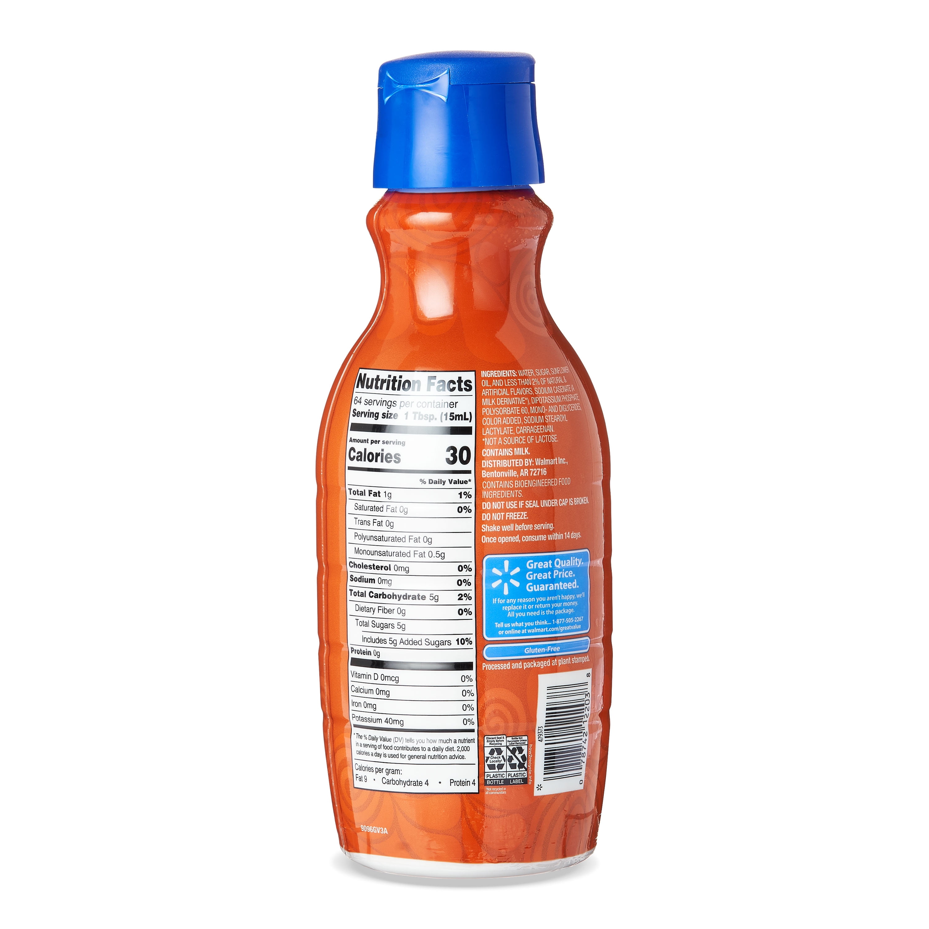 Skip the coffee shop and make your morning brew at home with Great Value Hazelnut Coffee Creamer. Our delightful coffee creamer is only 35 tiny calories per serving, making it an excellent choice for the health-conscious consumer and a great alternative to traditional heavy cream. Get creative in the kitchen and swirl our coffee creamer into your next batch of baked fudgy brownies or whip it into whipped cream for a delicious nutty flavor you’ll love. Make mornings magical with Great Value Hazelnut Coffee Creamer.