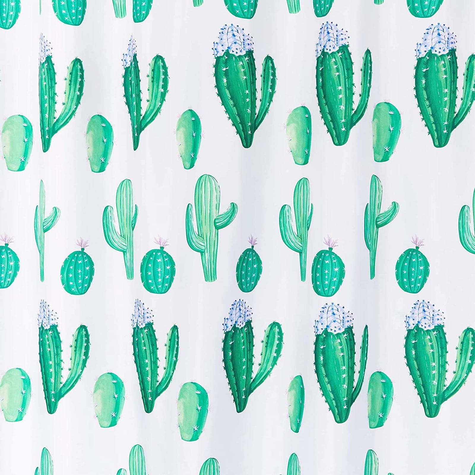 - VERSATILE DESIGN: This succulent shower curtain features various types of cactus printed throughout; an ideal choice for bathtubs and showers at home, campers, hotels, motels, and dorm rooms