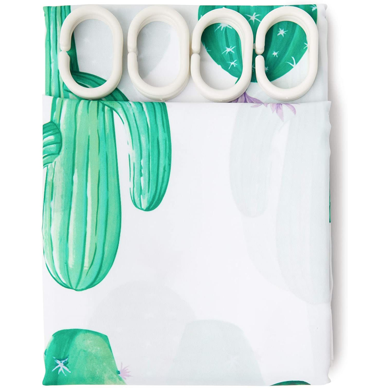 - SHOWER CURTAIN SET: Includes 1 cactus-themedshower curtain and 12 hooks for easy and convenient installation