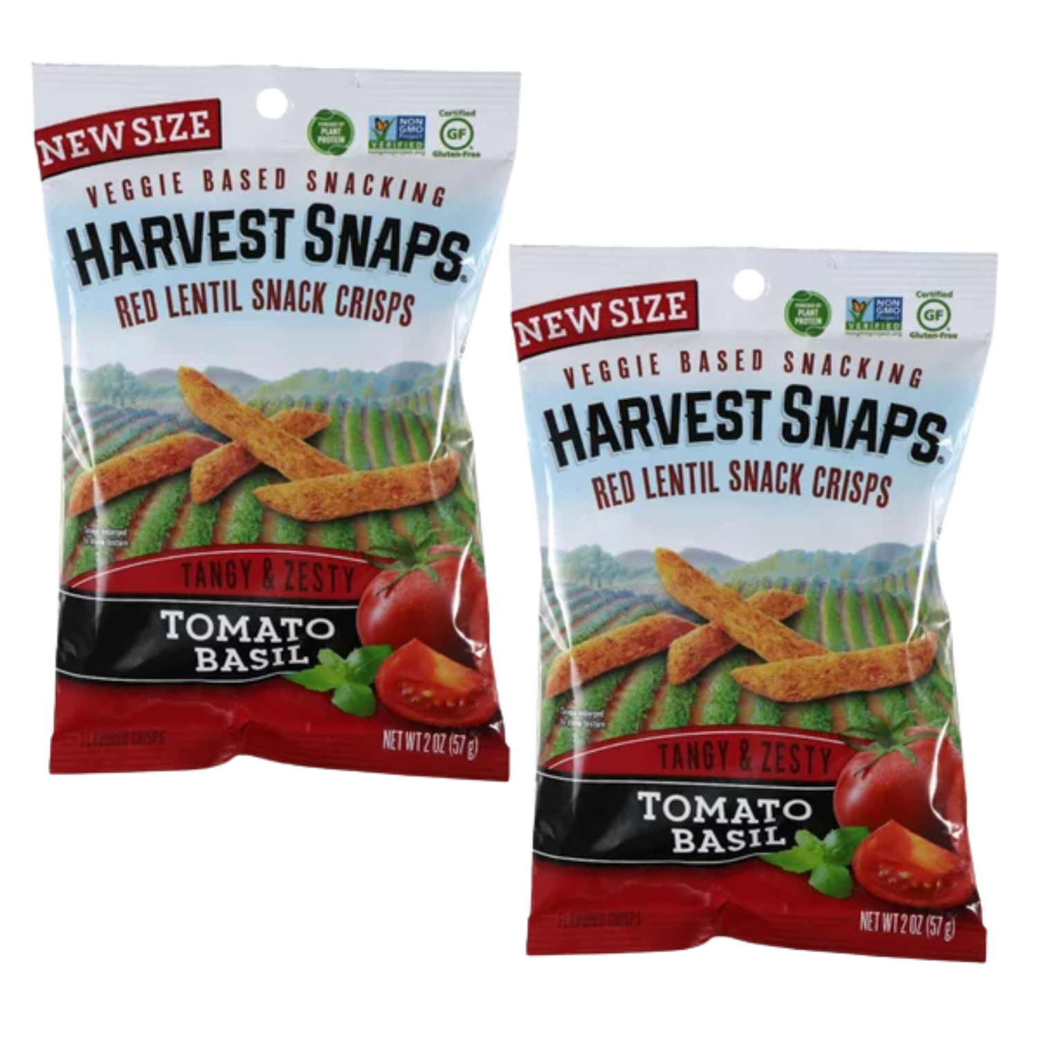 Harvest Snaps Red Lentil Vegetable Snack Crisps, Tangy, and Zesty Tomato Basil Flavor, 2 oz. of Delectable Baked and Crunchy Snacks with Plant Protein and Fiber – Pack of 2