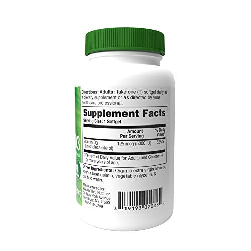 - Vitamin D3 5, 000iu 100 Soft gels -Health Thru Nutrition