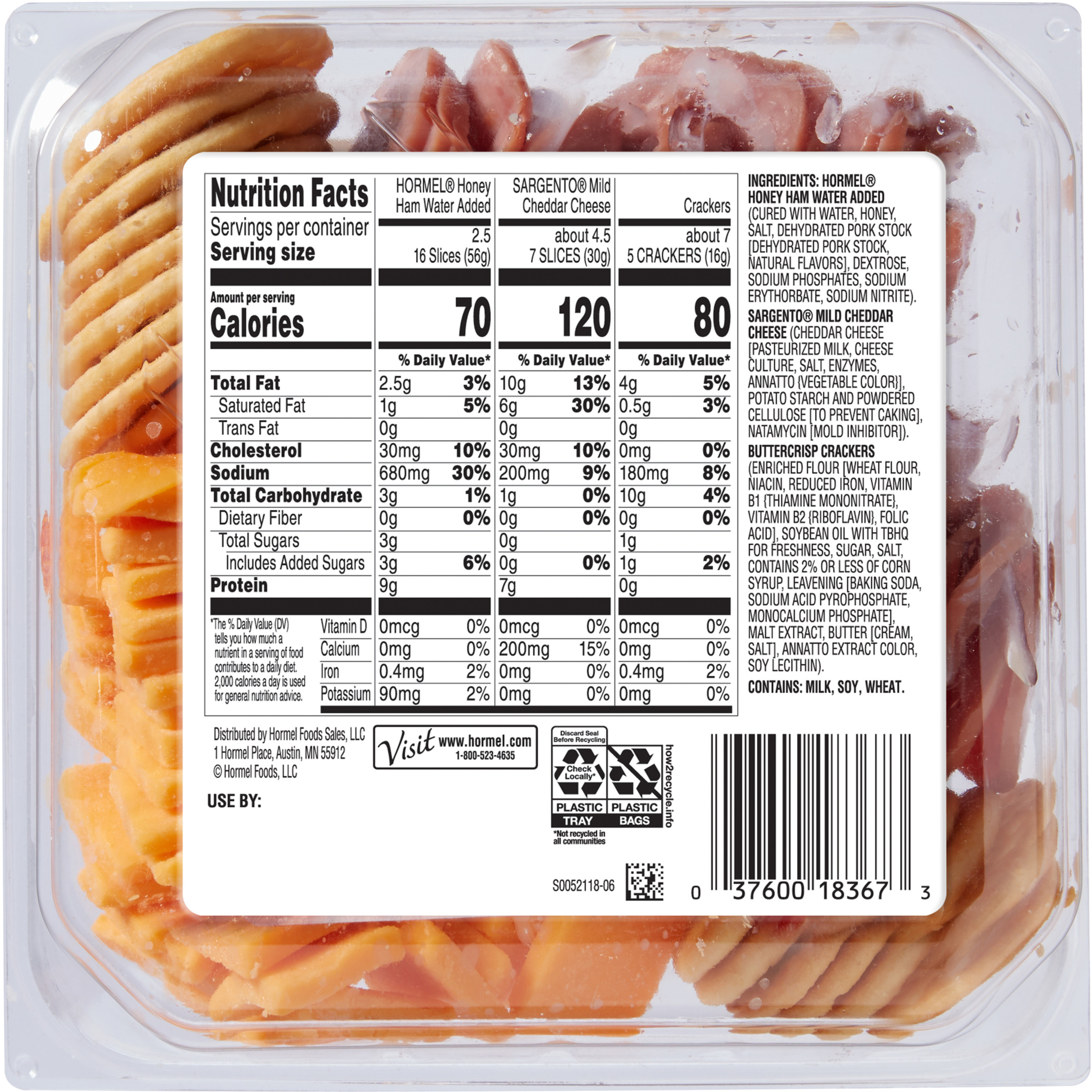 - Includes slices of honey ham, cheddar cheese and crackers; pair or stack flavors to create crave-worthy combinations