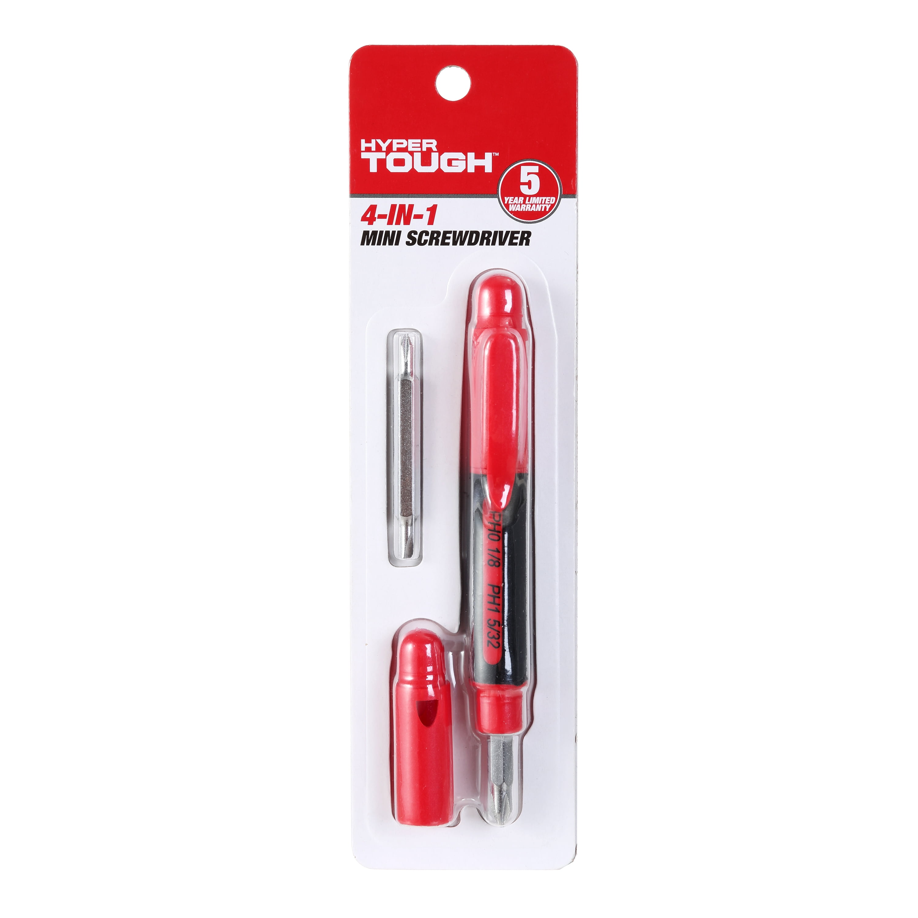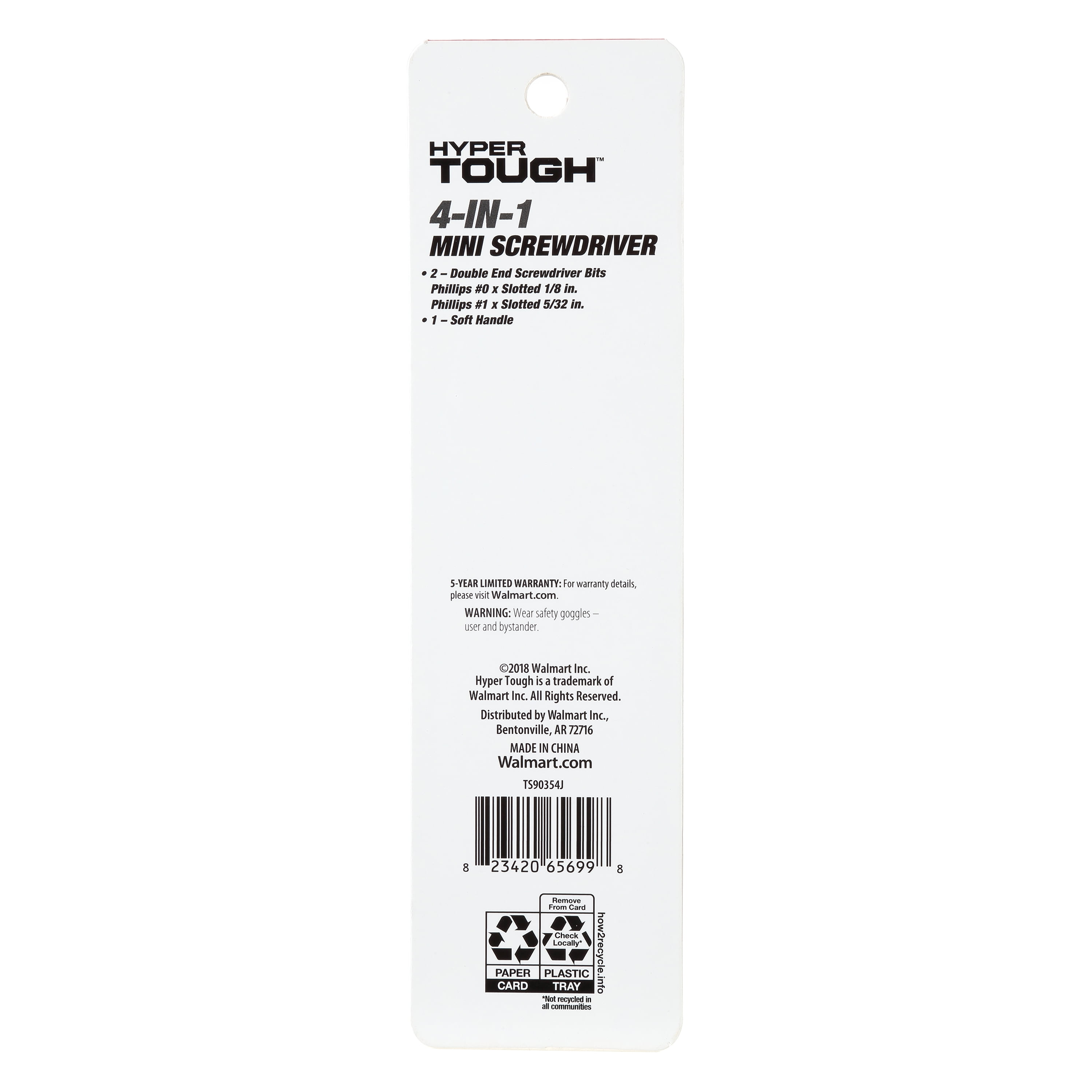 - Hyper Tough 4-in-1 Mini Screwdriver with 2 Double-ended Bits TS90354J: