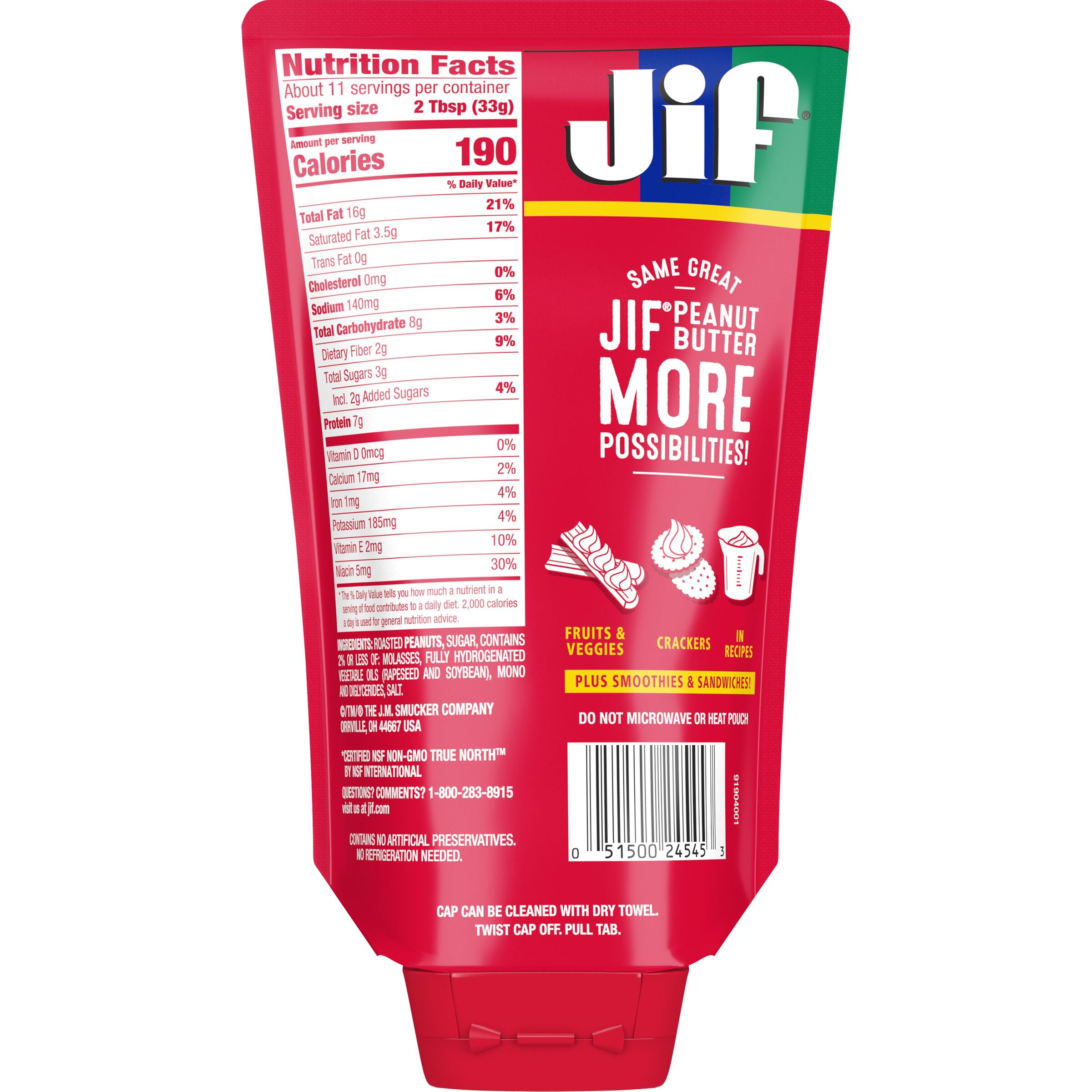 - Same great Jif Peanut Butter in a new easy-to-squeeze pouch.