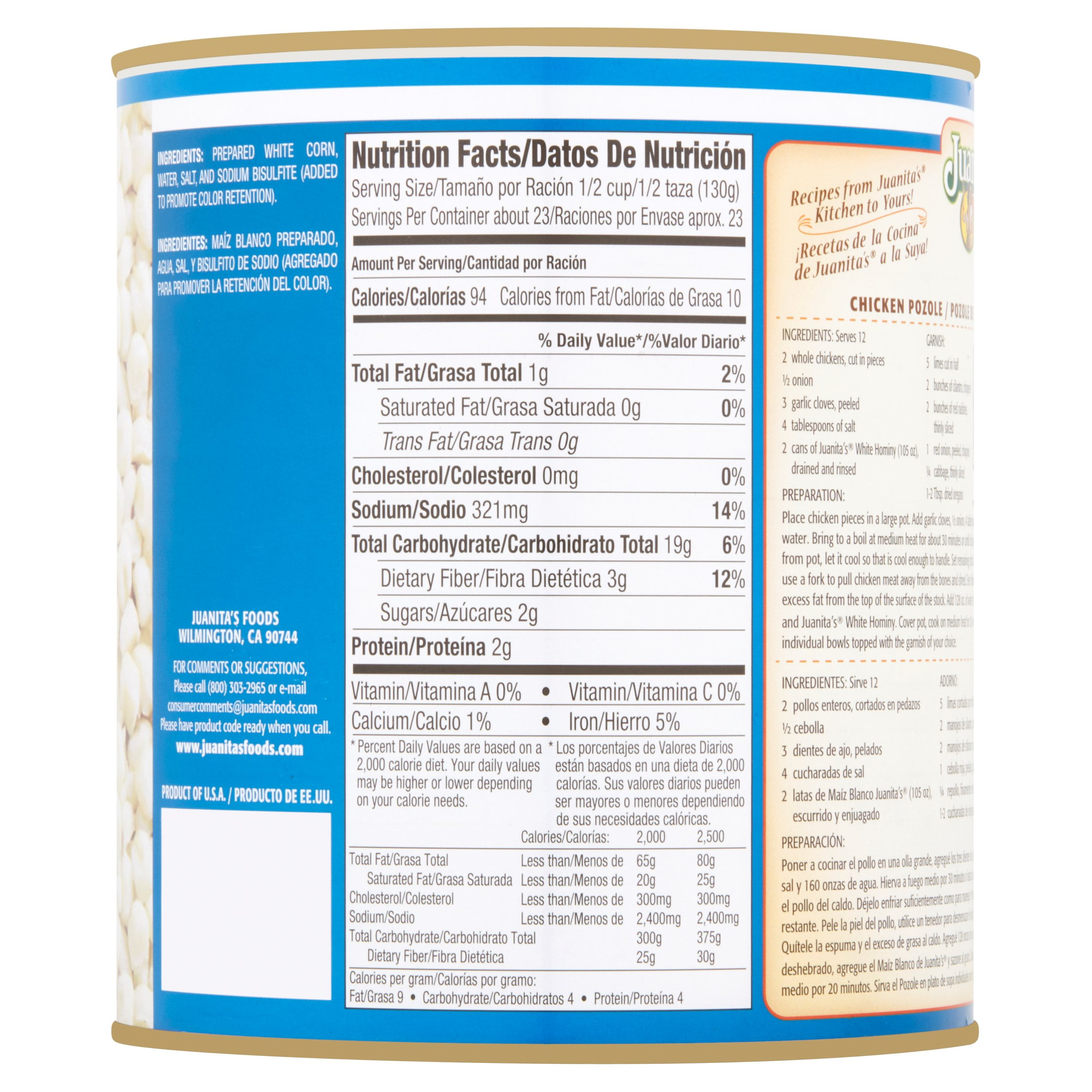 Juanita’s White Hominy is prepared with high quality ingredients to complement your favorite recipes. Our canned hominy is made the same way it’s been made for generations. Juanita’s family hominy recipes only use the highest quality ingredients for an authentic flavor.