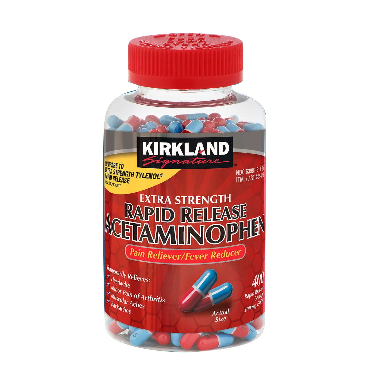 K.S Rapid Release Acetaminophen 500 mg., 400 Gelcaps