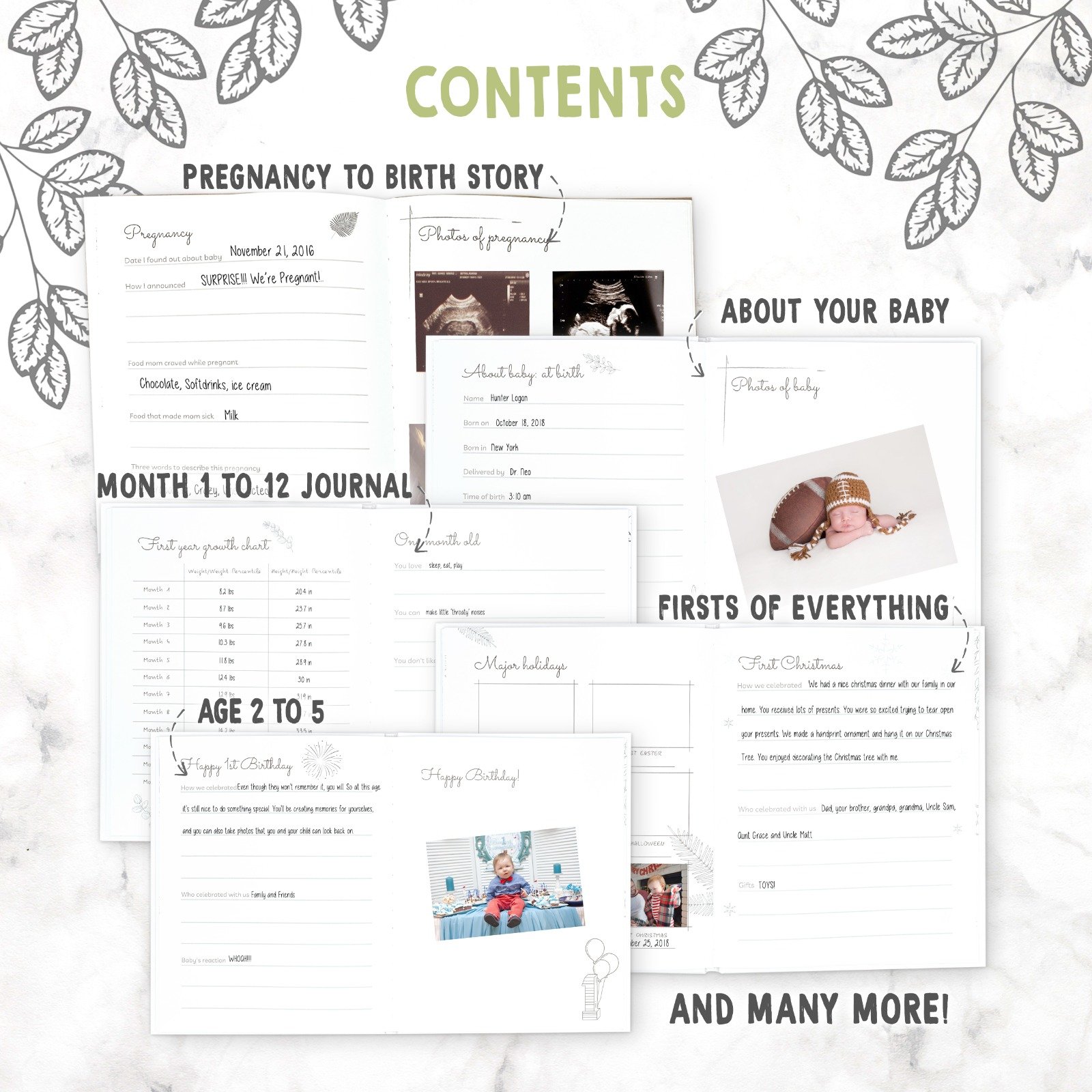 - Celebrate Important Milestones – Our SKETCH Baby Milestone Book covers pregnancy and birth, months 1 to 12, important milestones, major holidays and seasons, ages 2 to 5. Comes with large photo areas for your baby and family photos. Makes a great photo book album to commemorate your baby’s growing milestones.