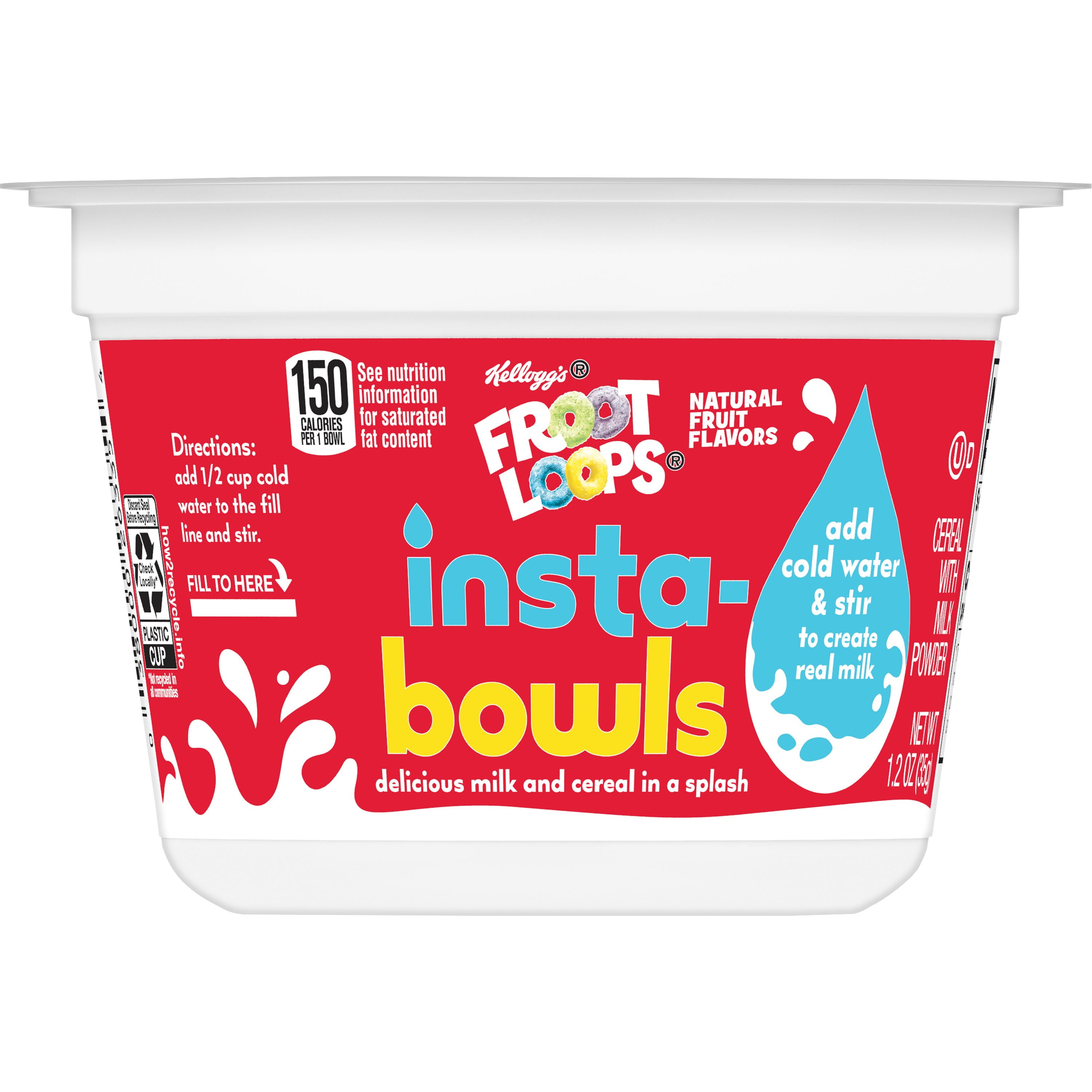 - Your favorite Kellogg’s Froot Loops cereal in a portable, insta-bowl; No milk required