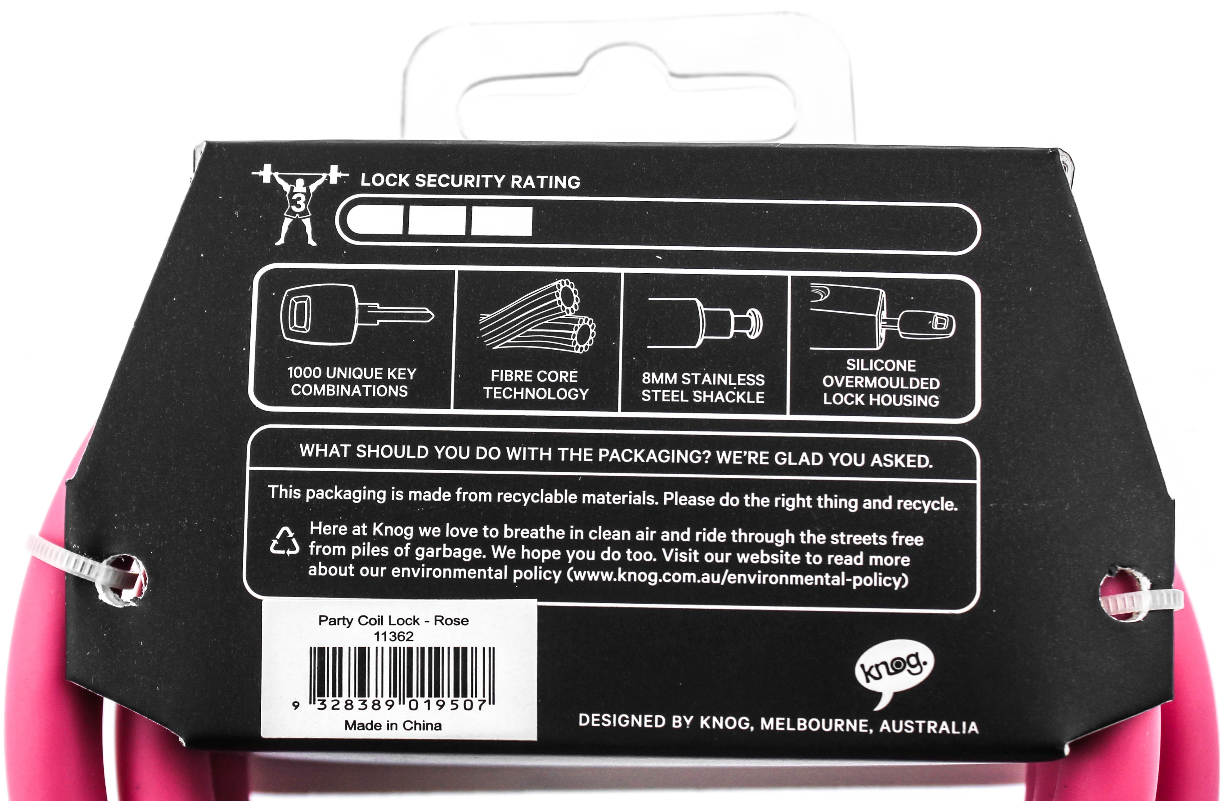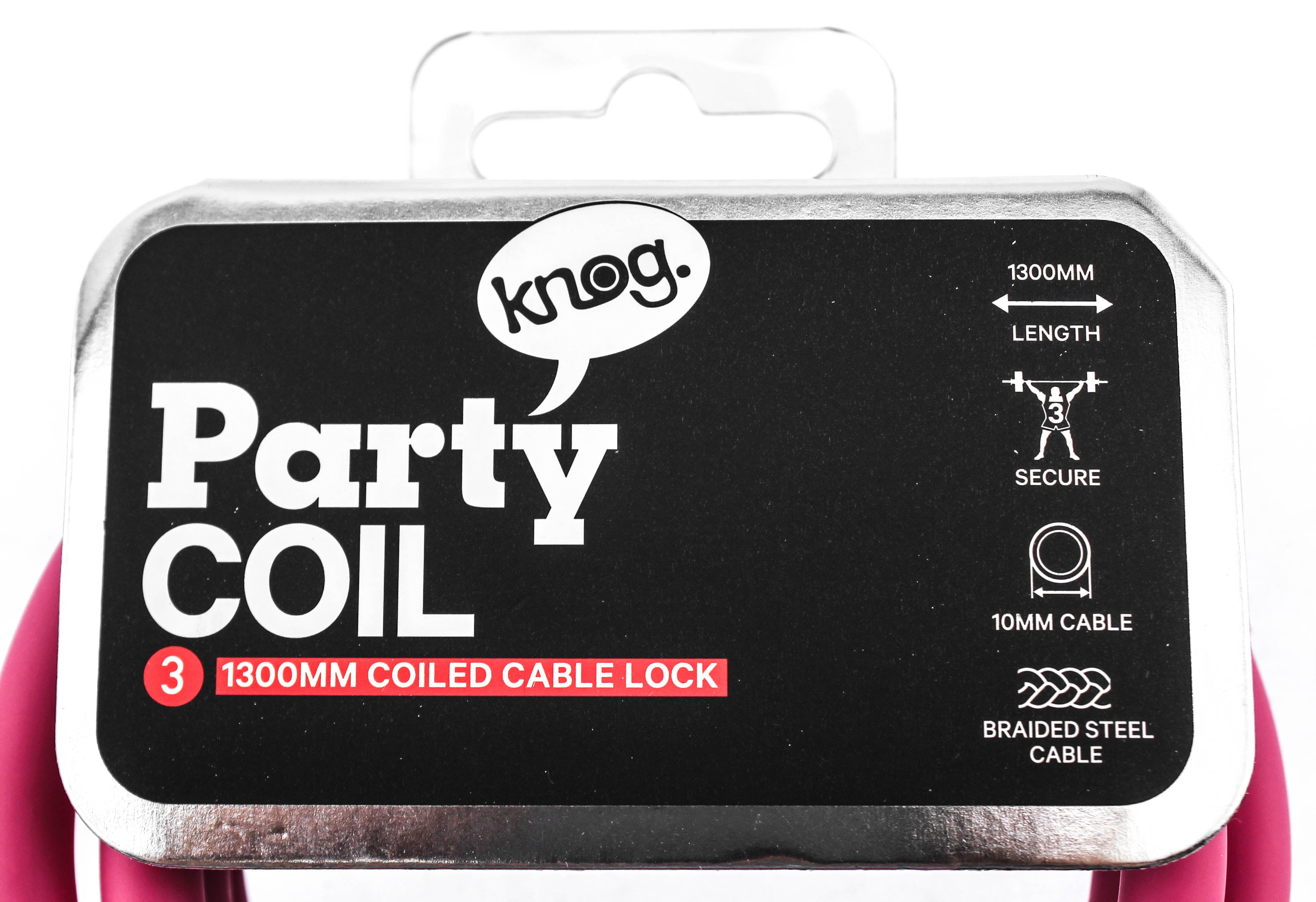 Knog Party Coil 1300mm Coiled Cable LockNew / MSRP $29.95 / Ships in 24hrsSPECIFICATIONS/FEATURES:Manufacturer: KnogModel: Party CoilType: Keyed cable lockLength: 1300mmDiameter of inner cable: 10mmMaterial: silicon coated, braided steel cableColor: Rose (Pink)Includes two (2) keysMass: 350g (Approximate)Condition: New in packageKnog Party Coil 1300mm Coiled Cable Bike Lock Braided Steel Rose Pink NEW
