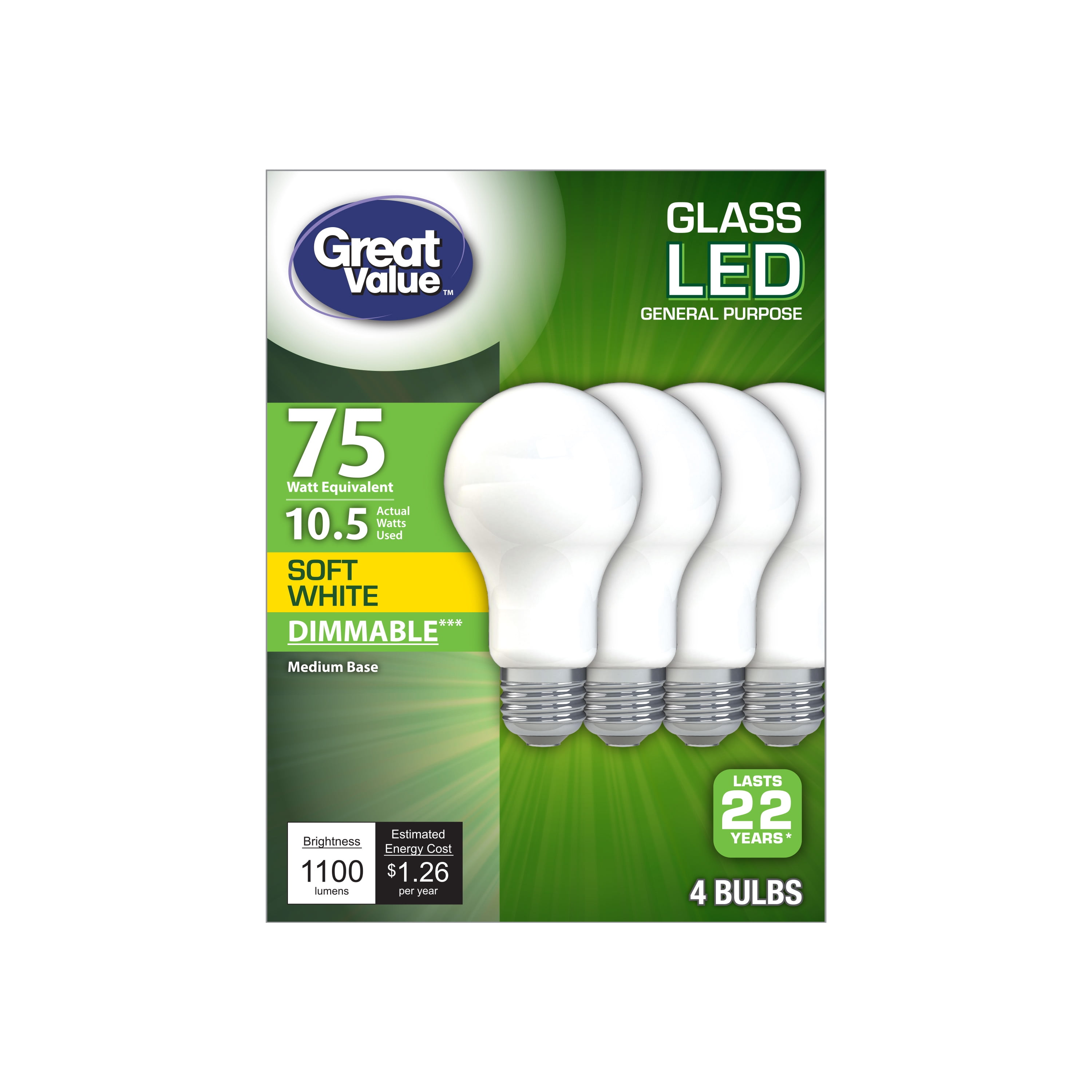 LED Soft White Glass Light Bulb, 75w, 22 years, Dimmable