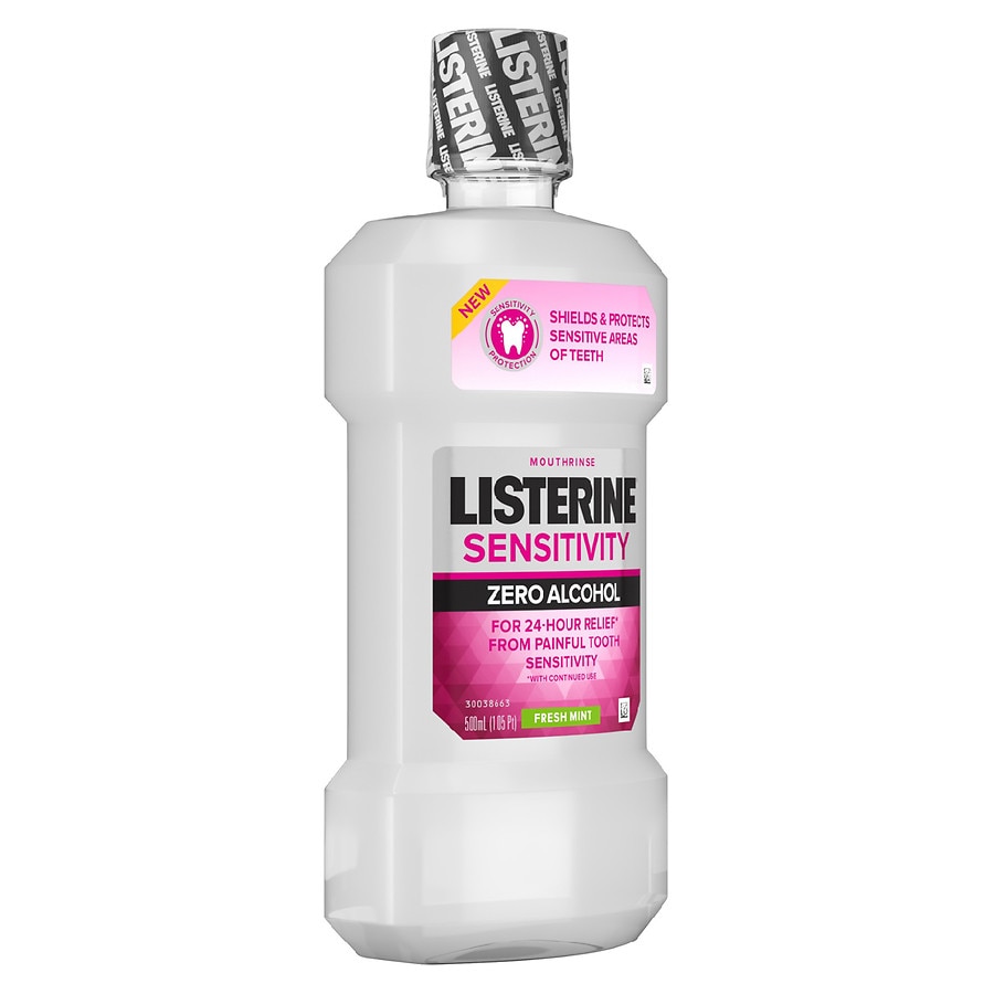 500 ml bottle of Listerine sensitivity zero alcohol mouthrinse in refreshing fresh mint flavor This new and uniquely formulated mouthwash shields and protects sensitive areas of the teeth Oral care features breakthrough crystal block technology to treat tooth sensitivity at the source