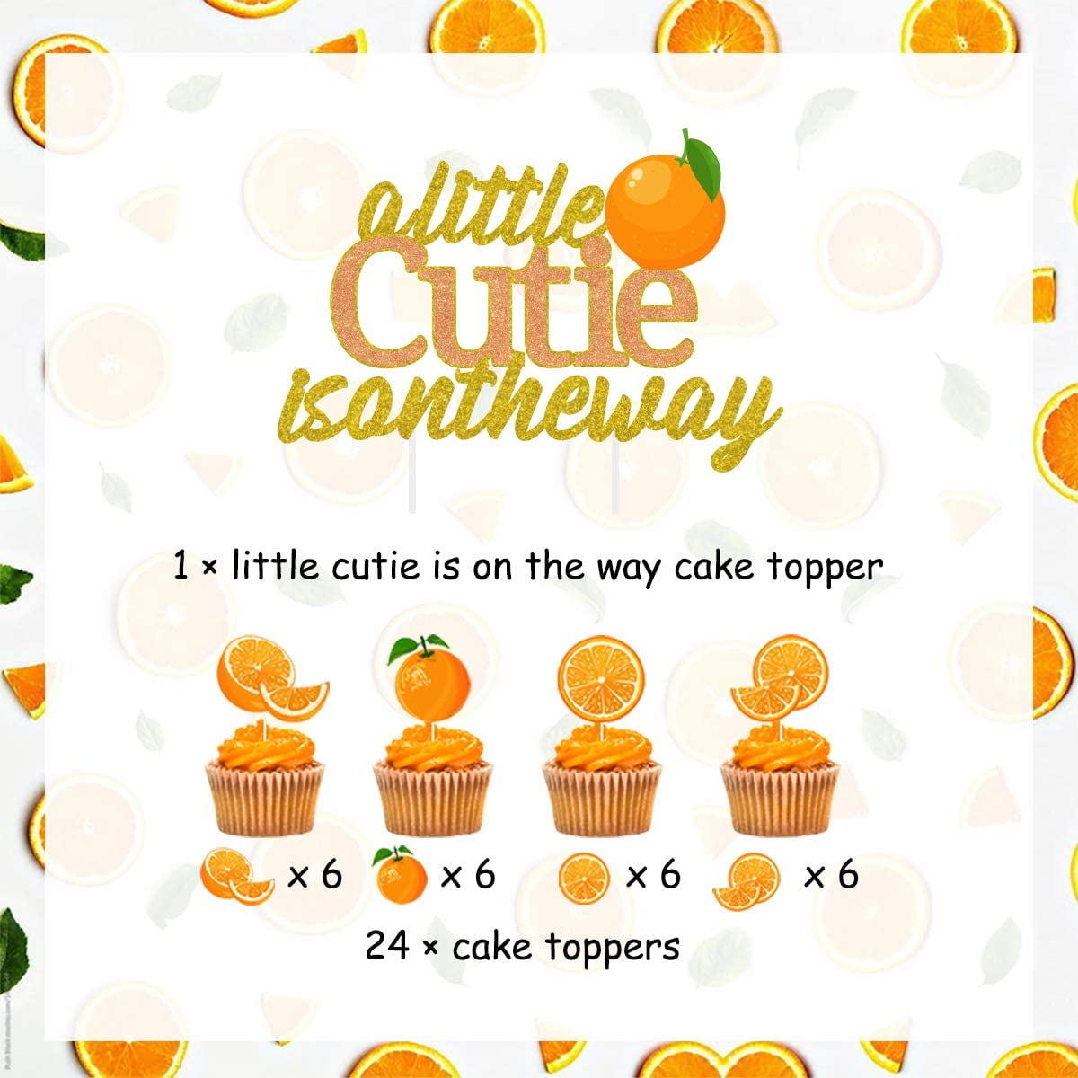Little Cutie Baby Shower Decorations Little Cutie is on the Way Cake Topper Tangerine Orange Baby Shower Cupcake Toppers for Clementine Party Supplies