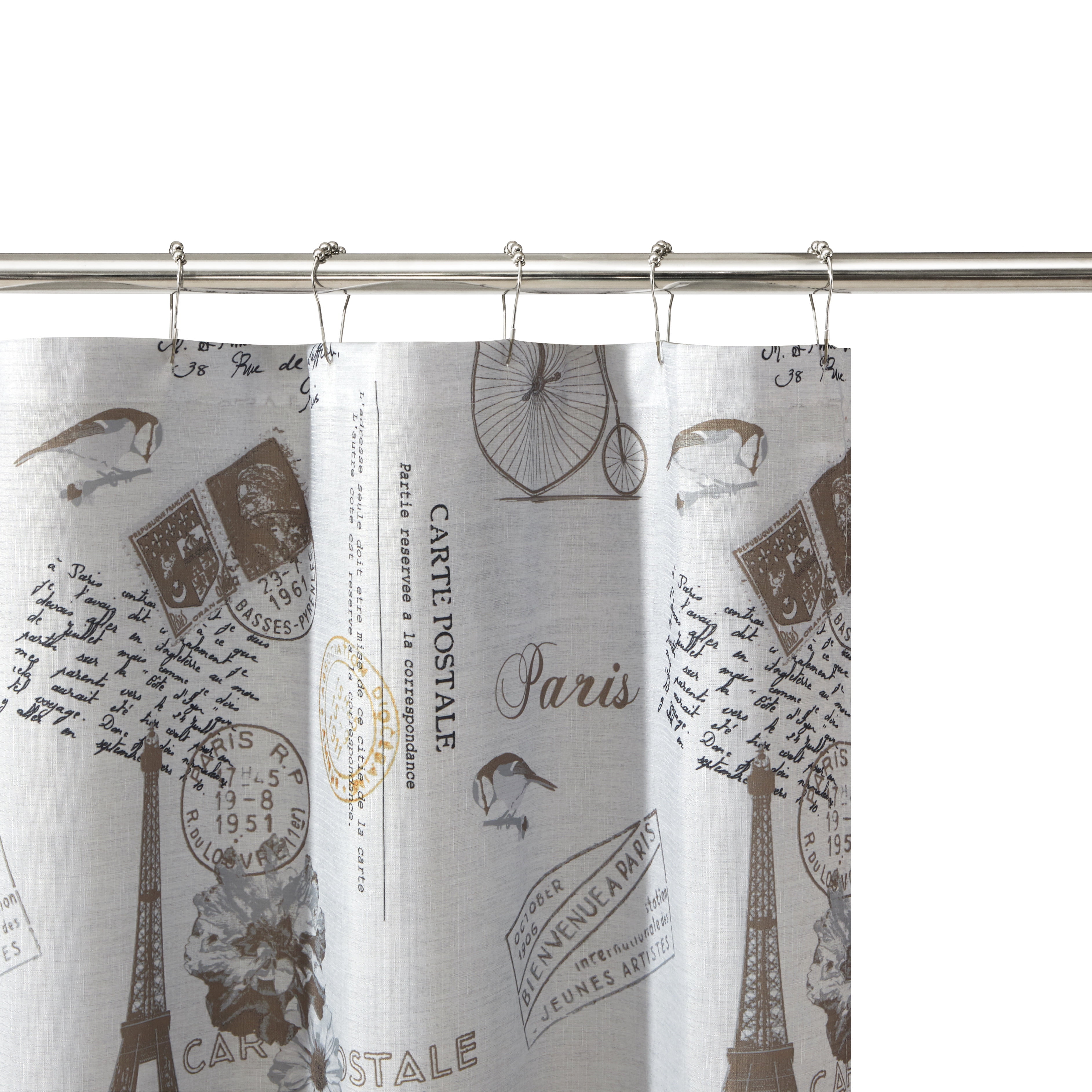 This beautiful and elegant Mainstays 14 Piece Gray Paris Printed Faux Linen 72" x 70" Shower Set with Hooks and Liner is a perfect way to update your bathroom decor. The soft and neutral tones make for a perfect way to match most color palettes and another bath decor. This Mainstays 14 Piece Gray Geometric Paris Printed Faux Linen 72" x 70" Shower Set with Hooks and Liner offers a luxurious appeal and adds a touch of texture and flair to any space. This Mainstays 14 Piece Gray Paris Printed Faux Linen 72" x 70" Shower Curtain Set with Hooks and Liner includes 1 shower curtain, 12 Rollerball hooks, and 1 PEVA shower liner. The Liner is easy to maintain with mild soap and water. The 100% polyester microfiber construction gives this shower curtain a soft finish that is machine washable for convenience.