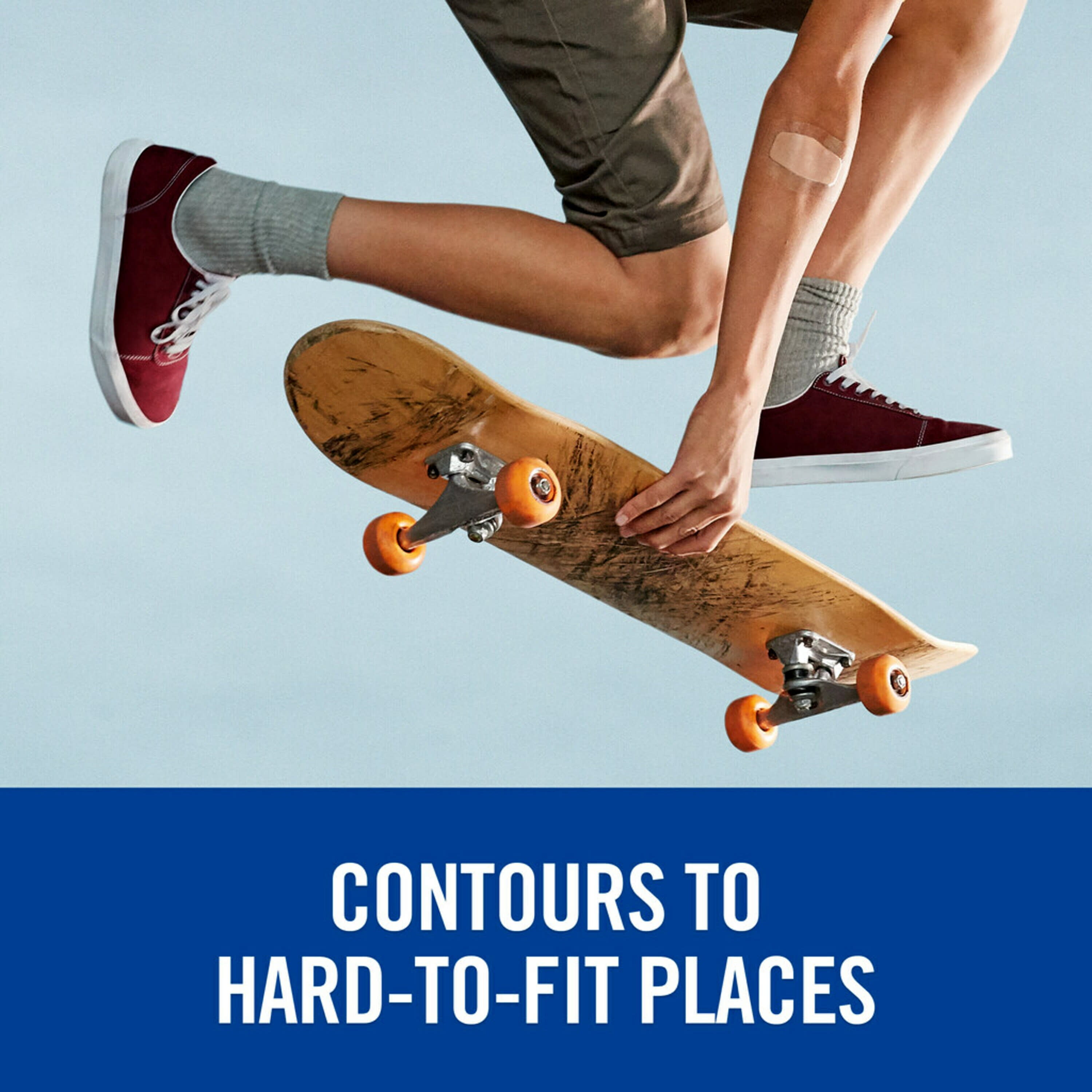 - Contours to hard-to-fit places, like heels, the hand, knees, and fingers