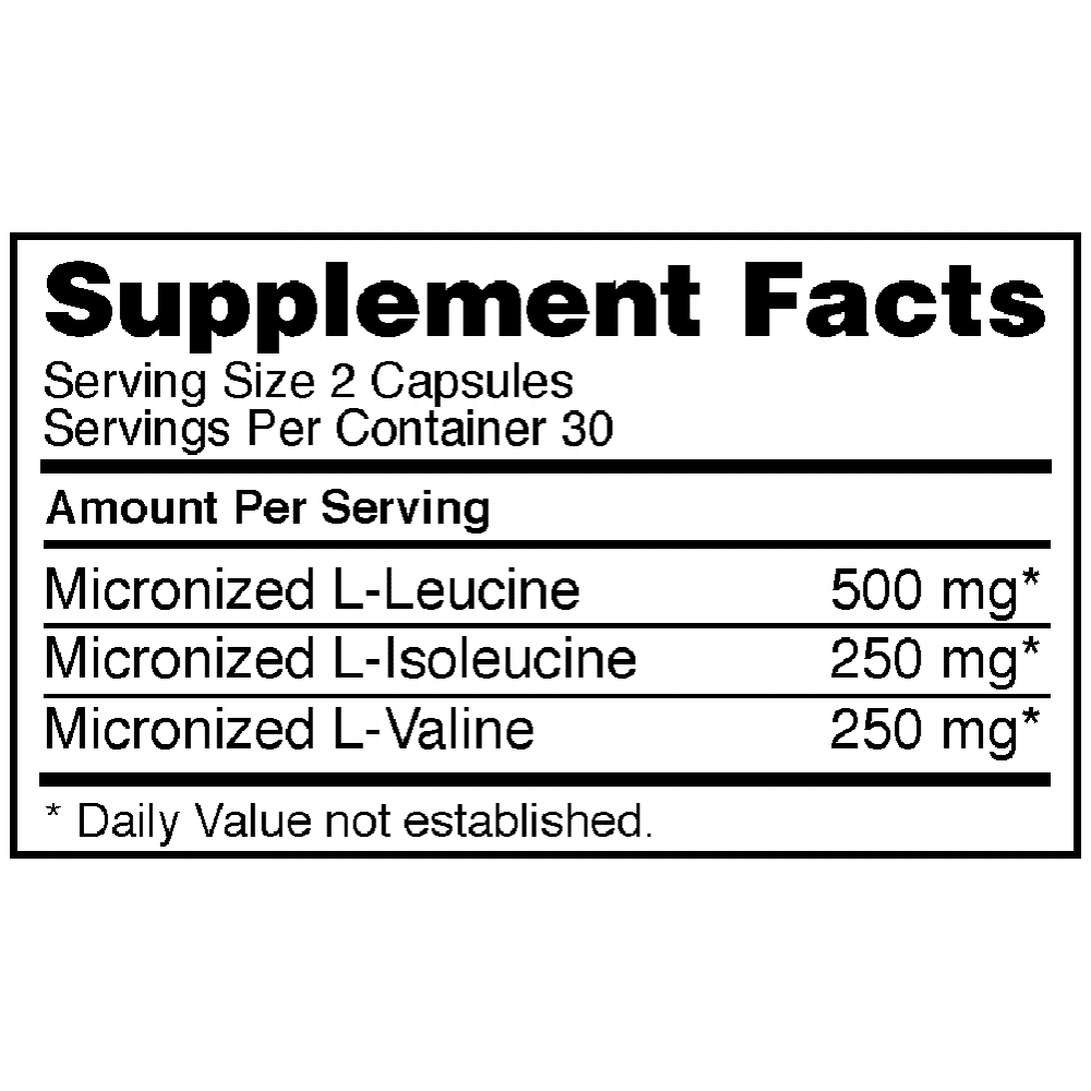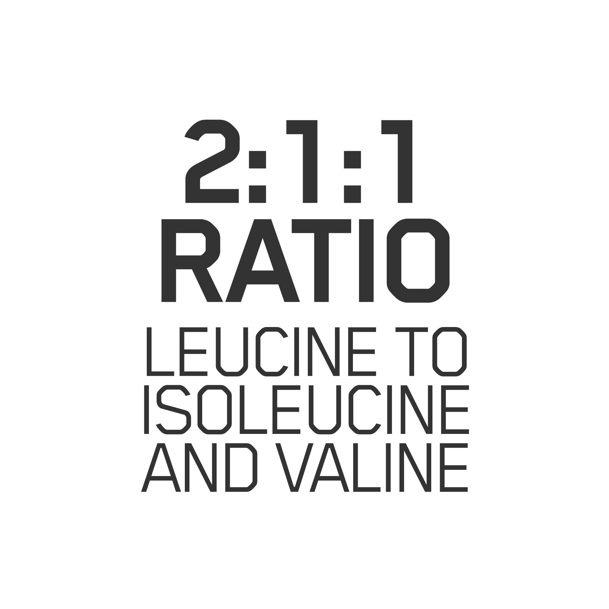 - BCAAs 2:1:1 ratio of leucine, isoleucine, valine
