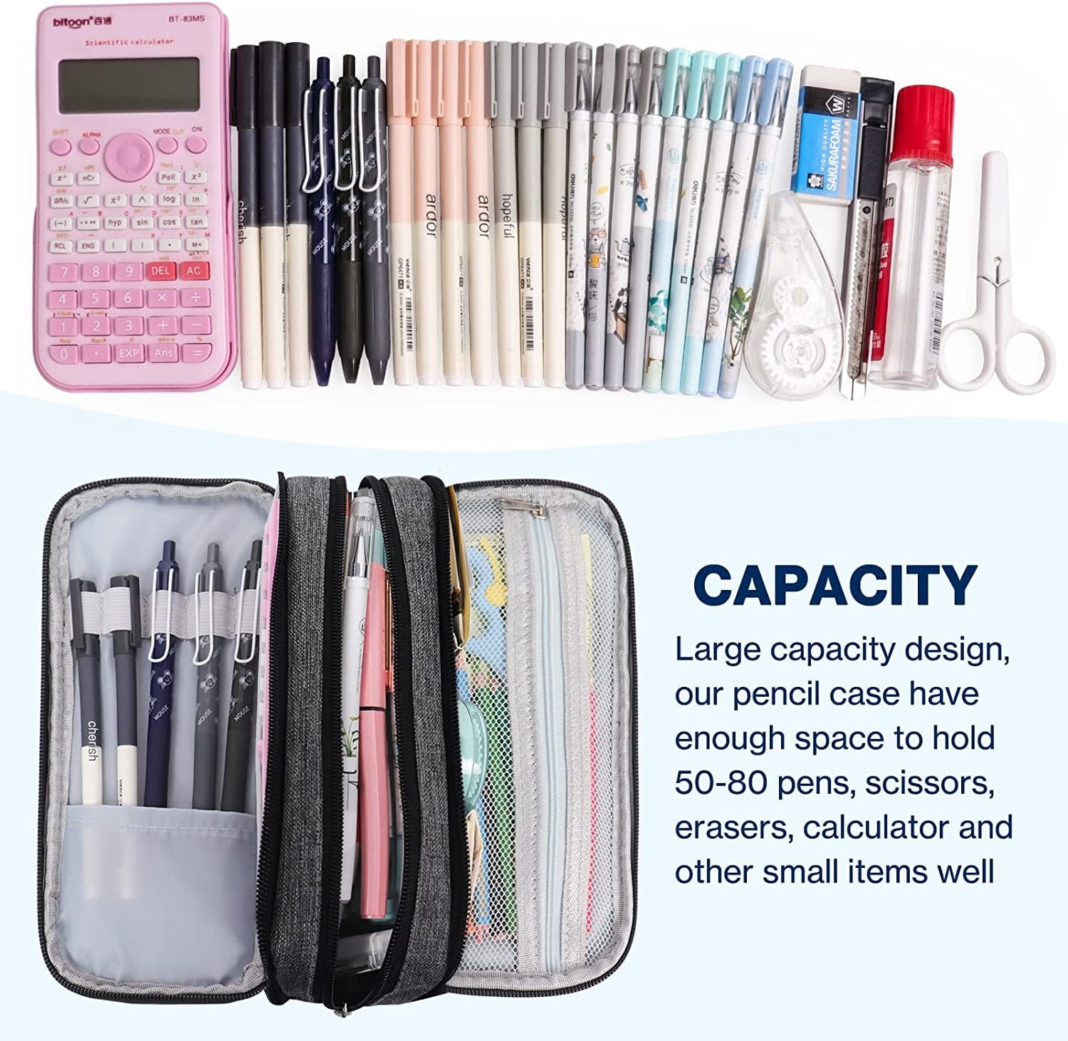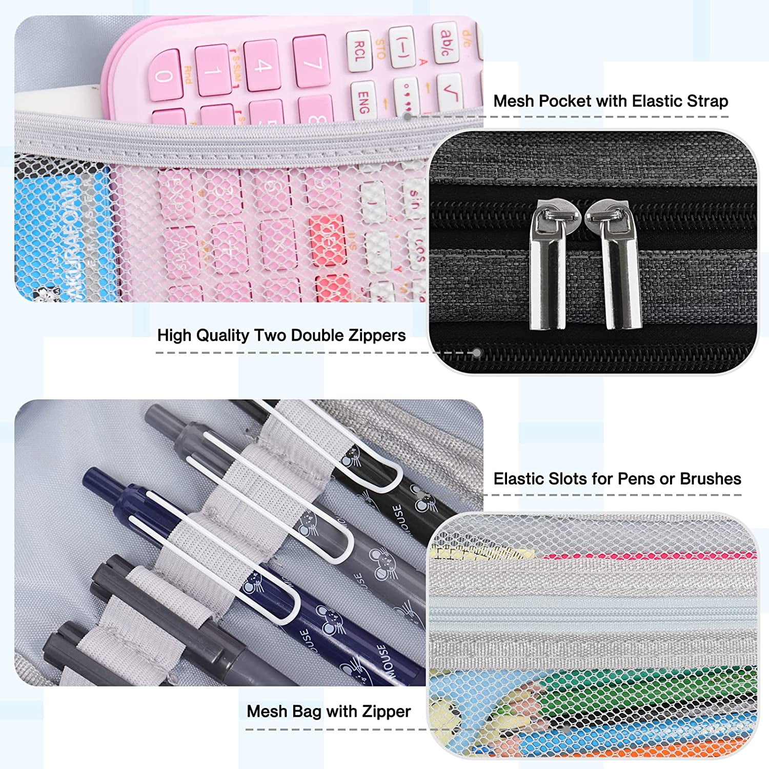 - HIGH QUALITY & DURABLE – The pen bag is consisted by high quality canvas with PVC inside. Our pen case is tough, scratch-resistant and dirt-resistant, durable and easy to clean. Besides, it comes with strong double zipper design that can withstand plenty of use.