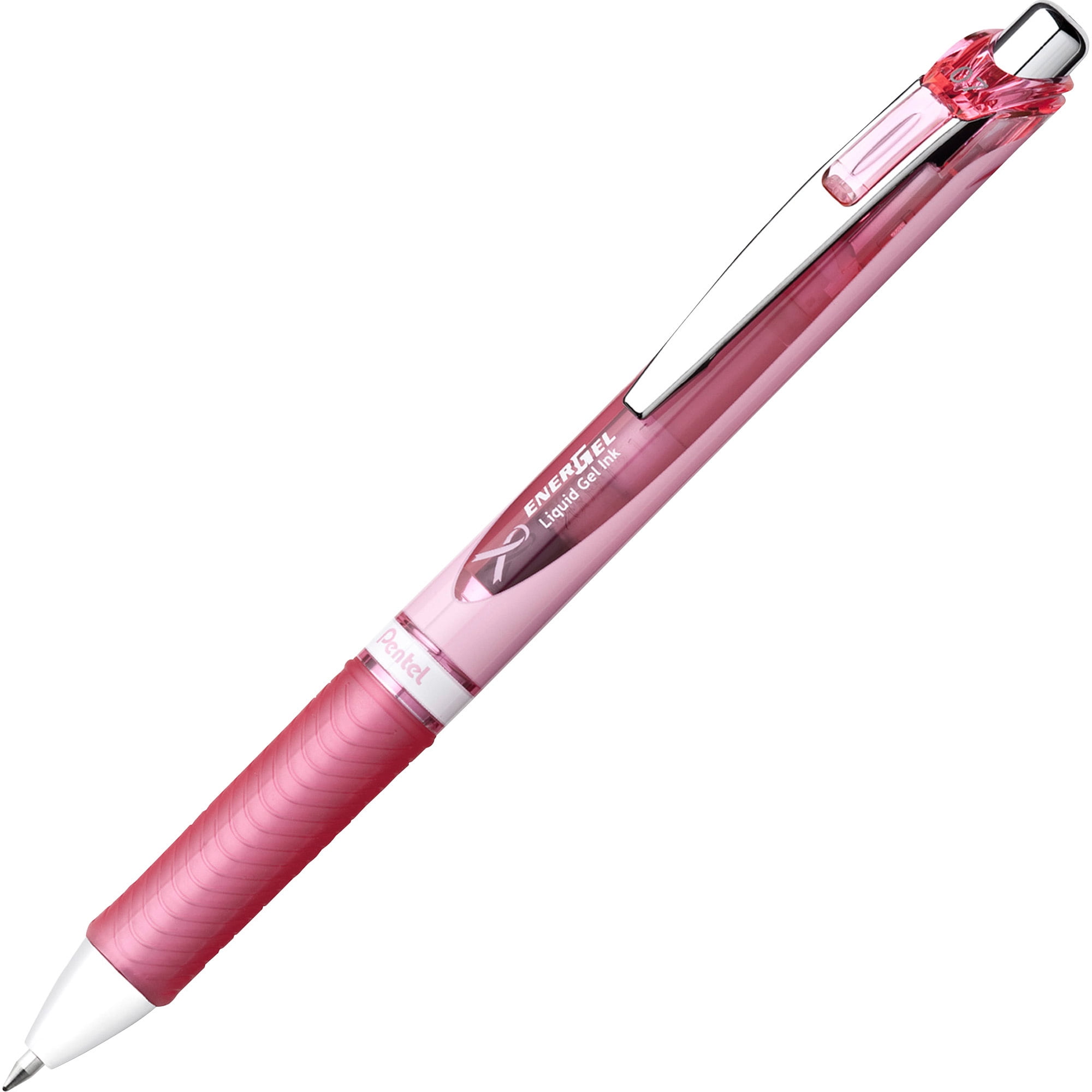 Pentel Pink BCA Ribbon EnerGel RTX Retractable jel Pen, (0.7 mm), Medium Line, Pink Barrel, Black , 3 Per Pack
