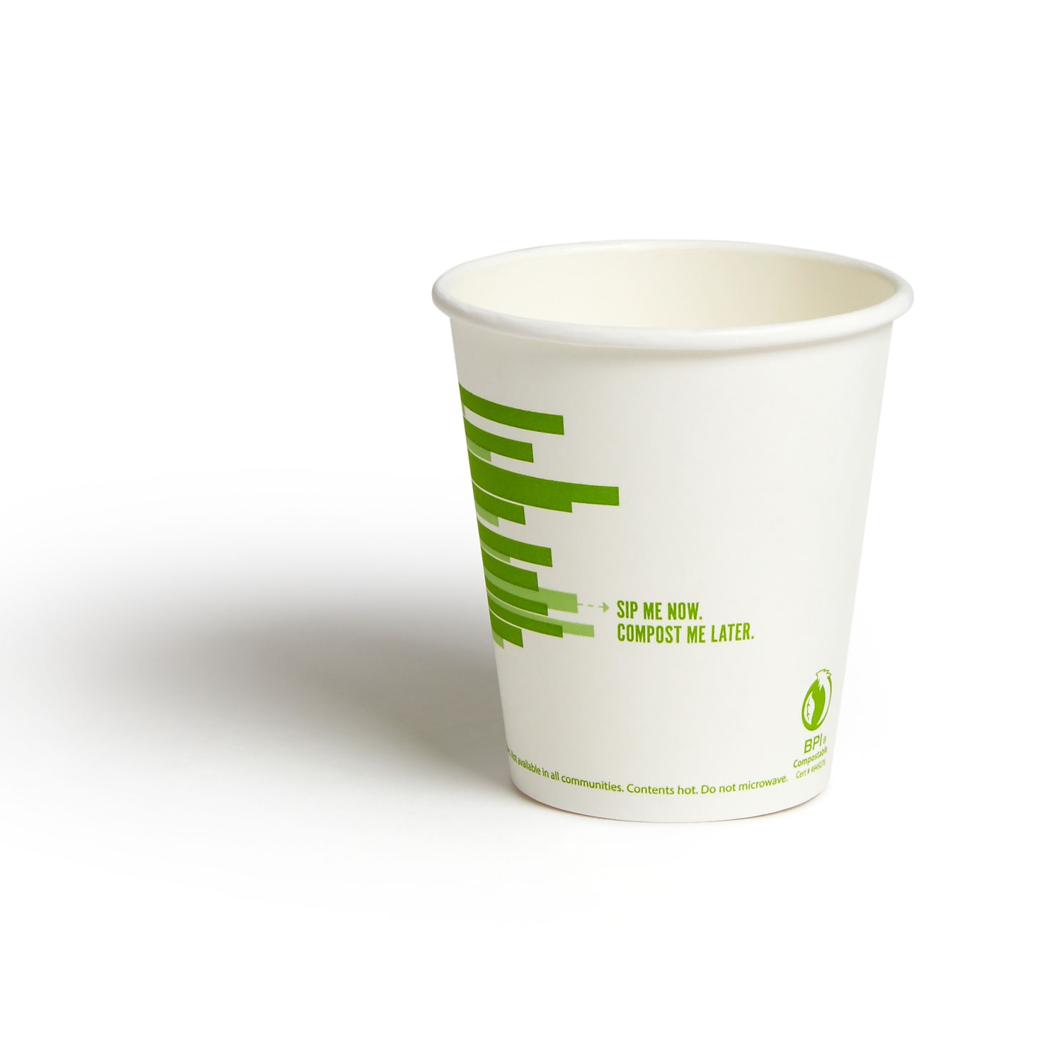 Perk Compostable Paper Hot Cup 10 Oz. White/Green PK56223