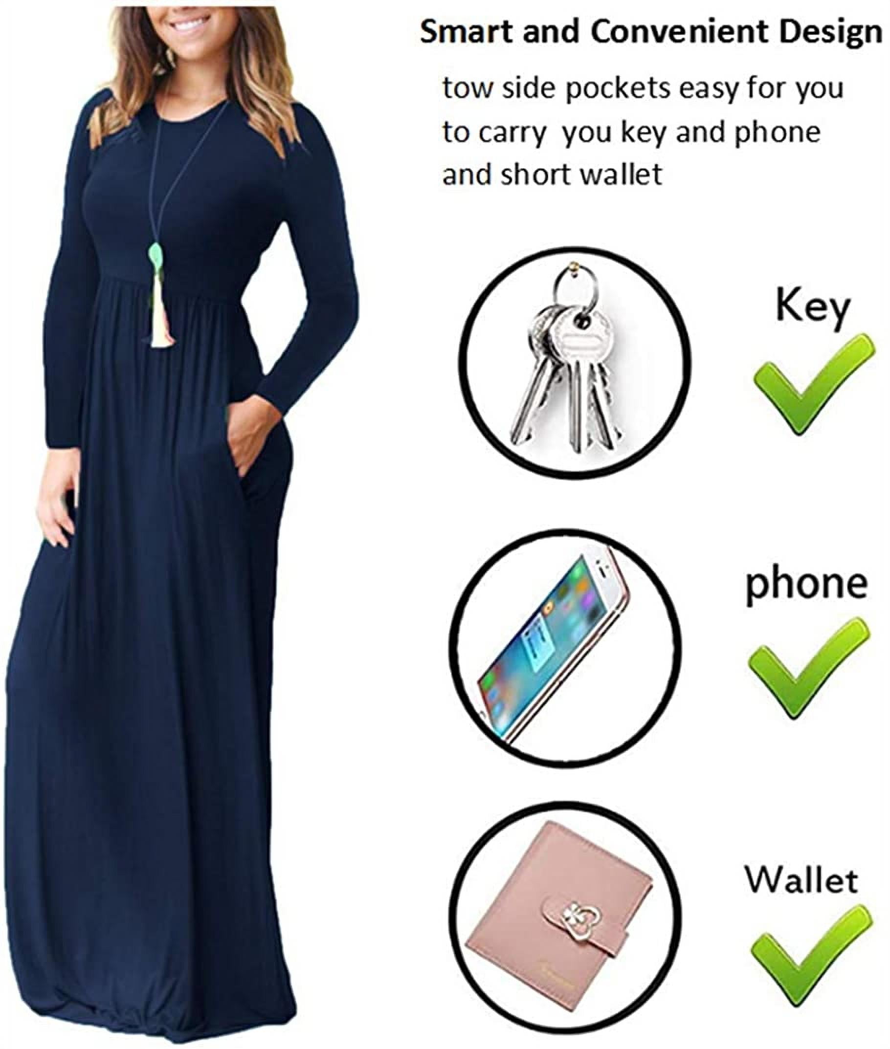 - Features: Unique style,make you beautiful,fashionable,sexy and elegant.Casual Style,Two Side Pockets,Long Sleeves,Round Neck,Floor Length,Elastic at Waist,Not lined,Maxi Dresses.