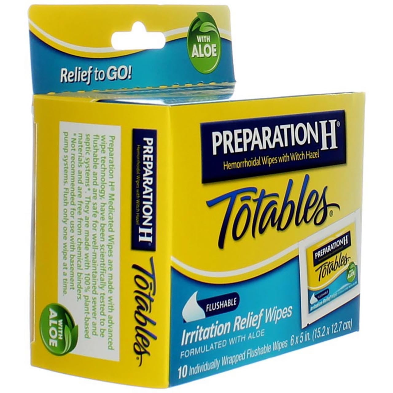 - Includes two 10-count pouches of individually wrapped flushable maximum strength formula Preparation H Medicated Wipes with witch hazel and aloe.