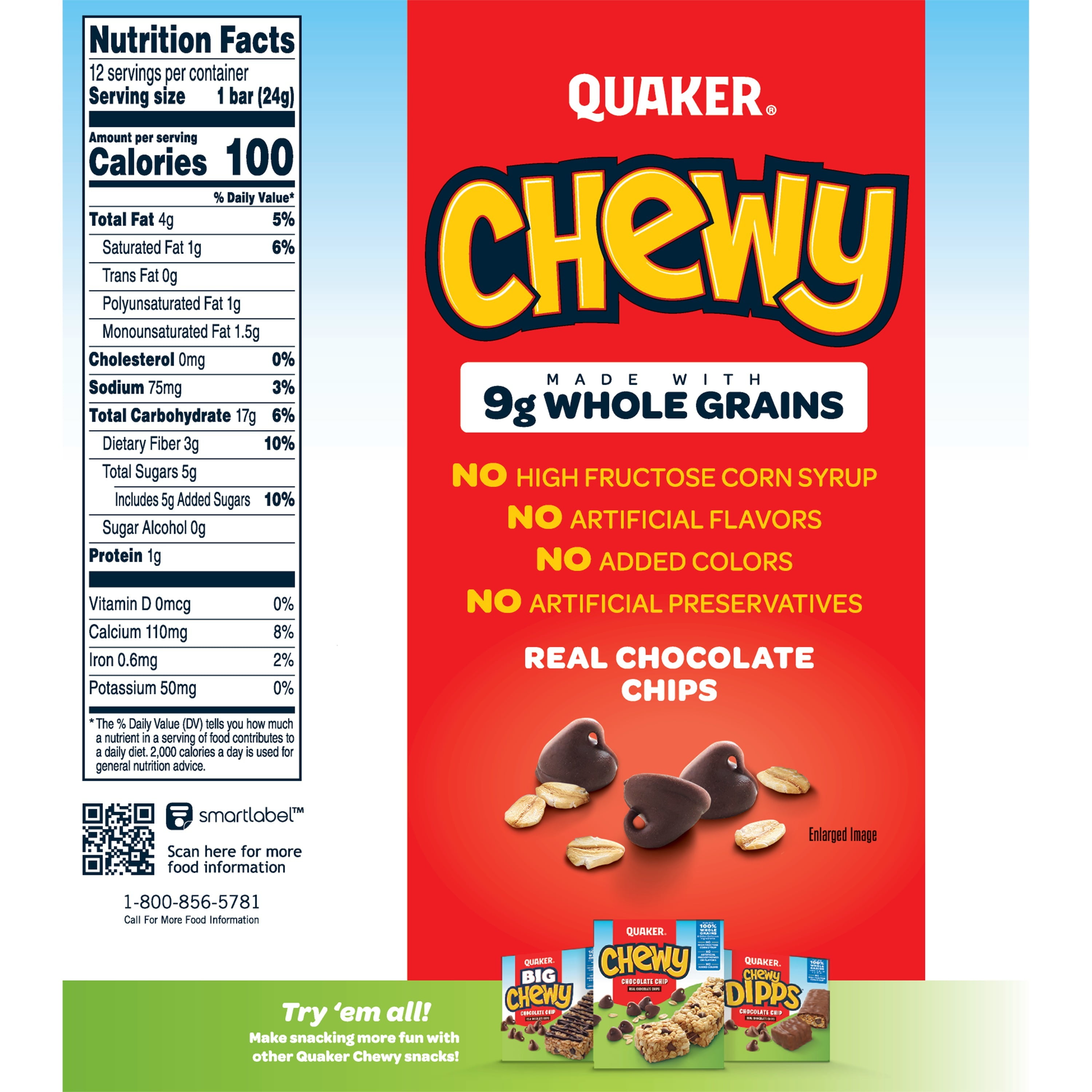 - For every packed lunch, field trip, halftime and snack break, Quaker Chewy has got you covered!
