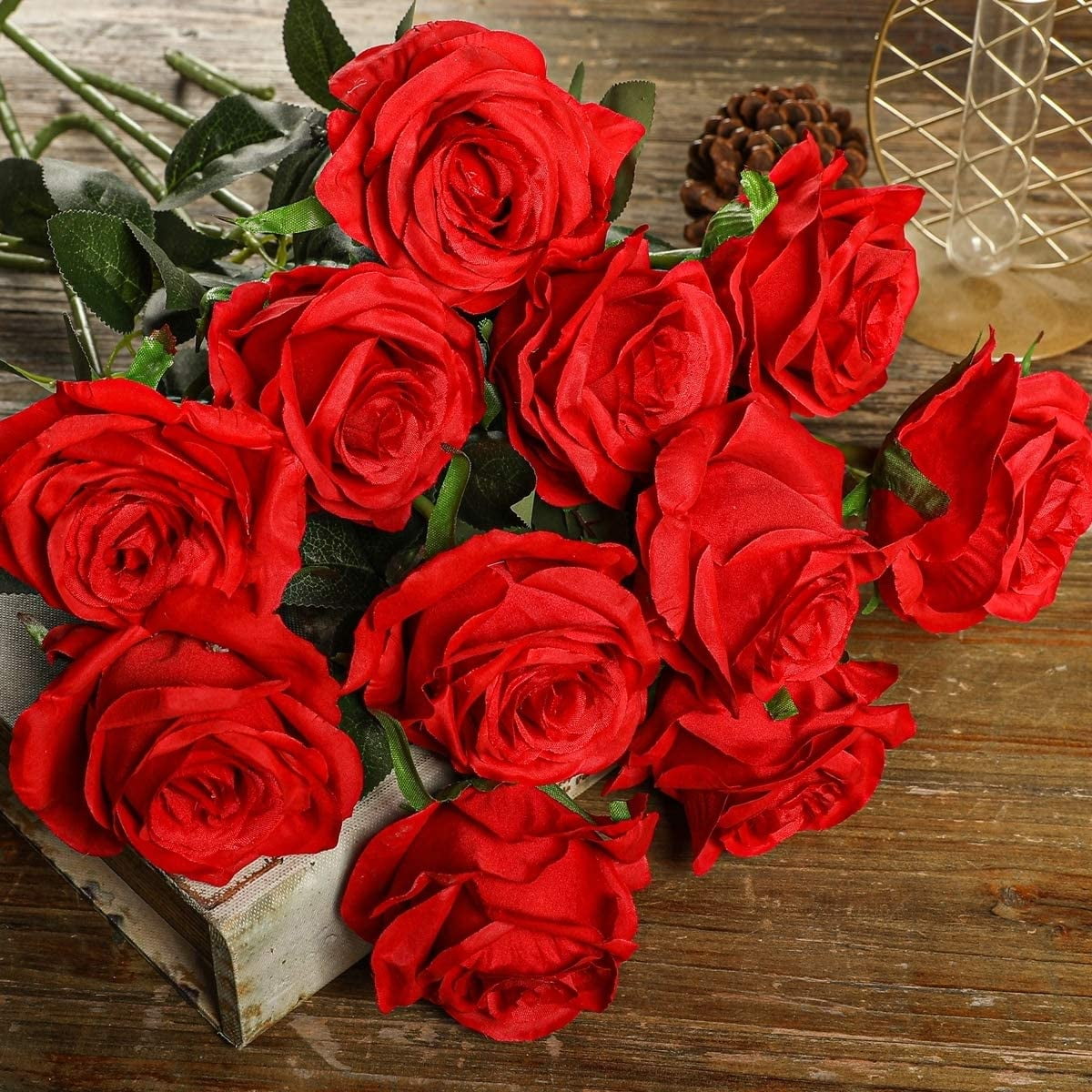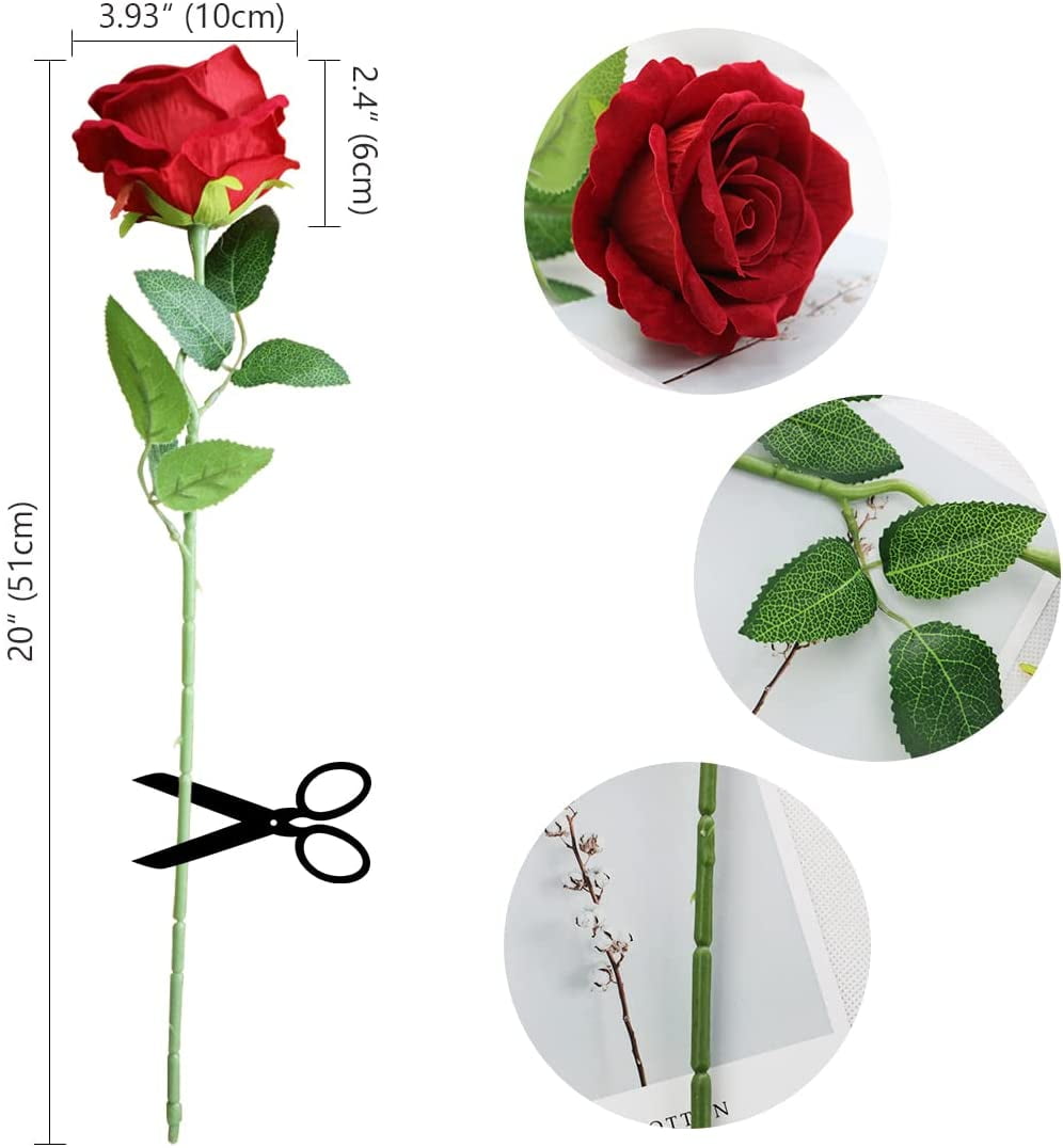 - High-grade material: The red artificial rose bouquet is made of high-quality silk, plastic and metal wire, so it can be bent freely, and can be adjusted in height and shape.