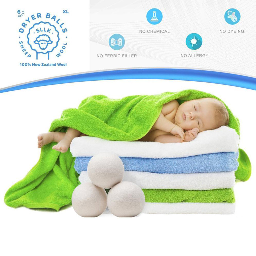 Sheep 6-Pack Premium Wool Dryer Balls Reusable Natural Fabric Softener 7CM Feature: