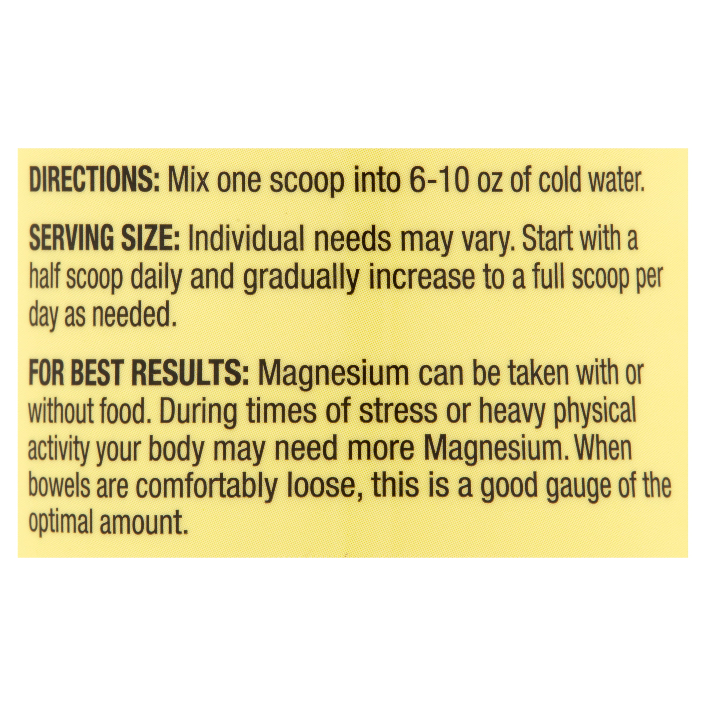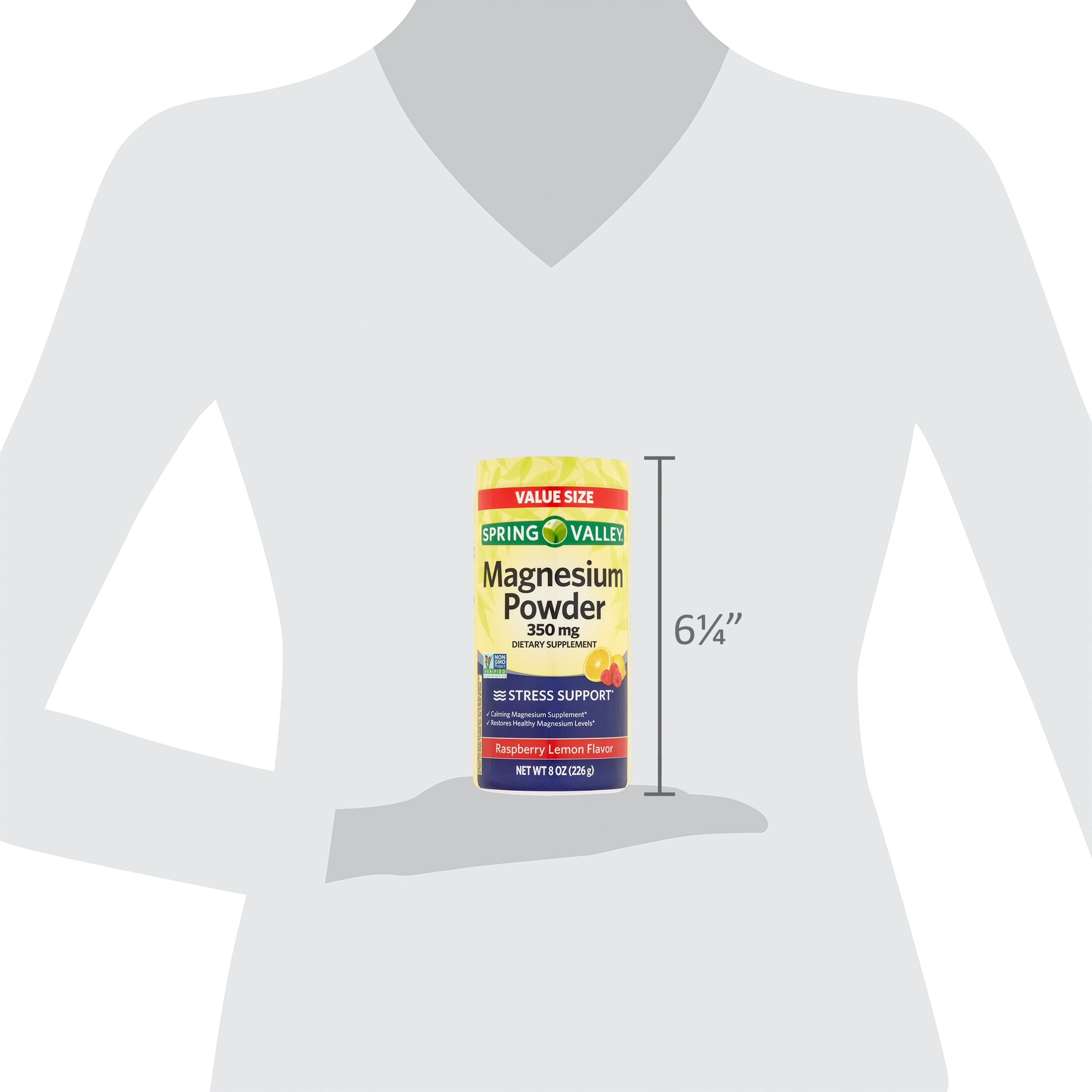 Our Spring Valley Magnesium Powder Raspberry Lemon Flavor Dietary Supplement Value Size, 350 mg is a dietary supplement that may provide calming stress support and help restore healthy magnesium levels. This supplement contains no gluten, eggs, soy, milk or milk derivatives, lactose, fish, shellfish, tree nuts, peanuts, sugar, artificial color, or artificial flavor. The recommended dosage is one scoop in 6 to 10 ounces of cold water. You can rest assured that our Spring Valley Magnesium Powder Raspberry Lemon Flavor Dietary Supplement Value Size, 350 mg is produced with strict quality guidelines and is backed by our quality guarantee.
