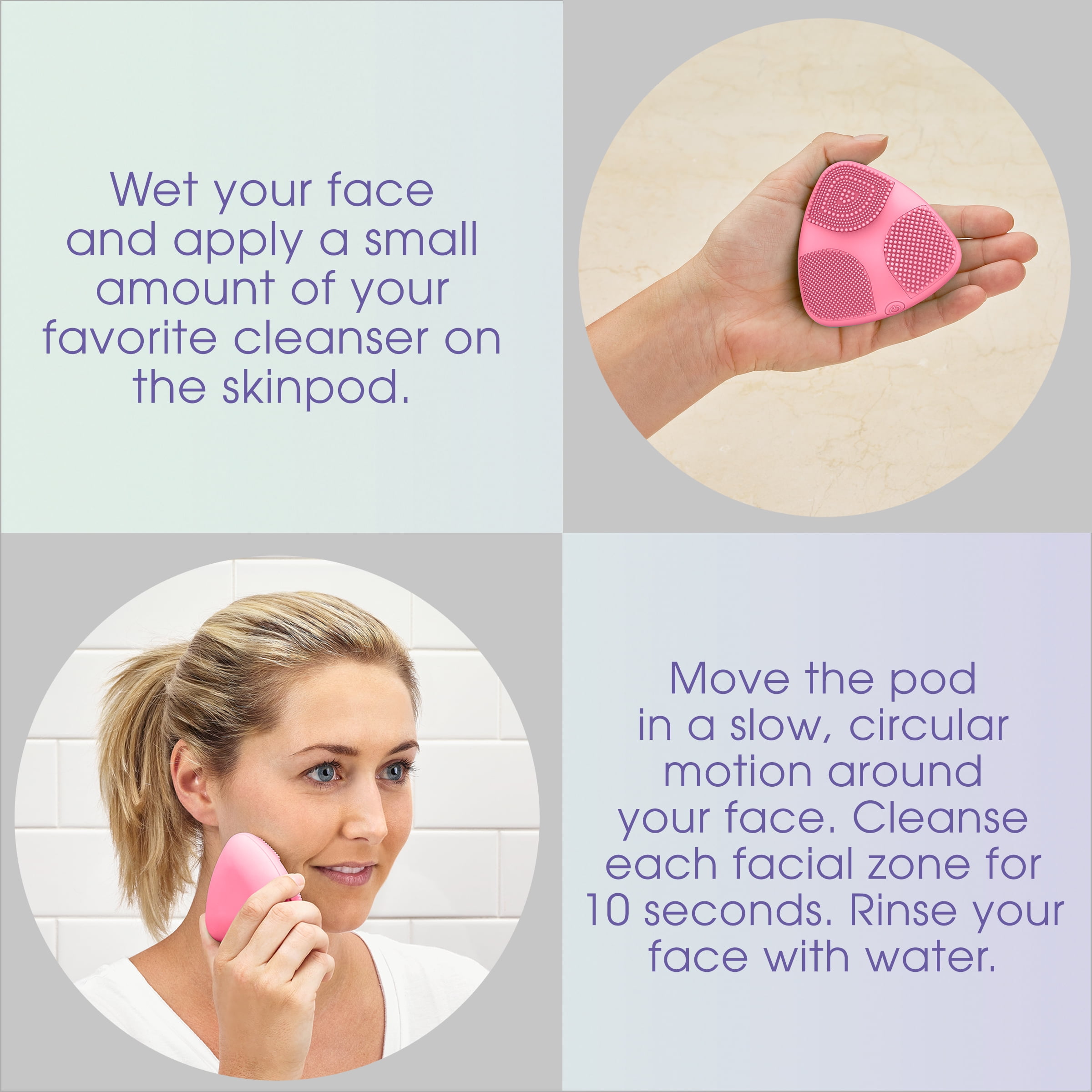 True Glow by Conair SKINPOD Silicone Cleansing Facial Brush, SF1PNK