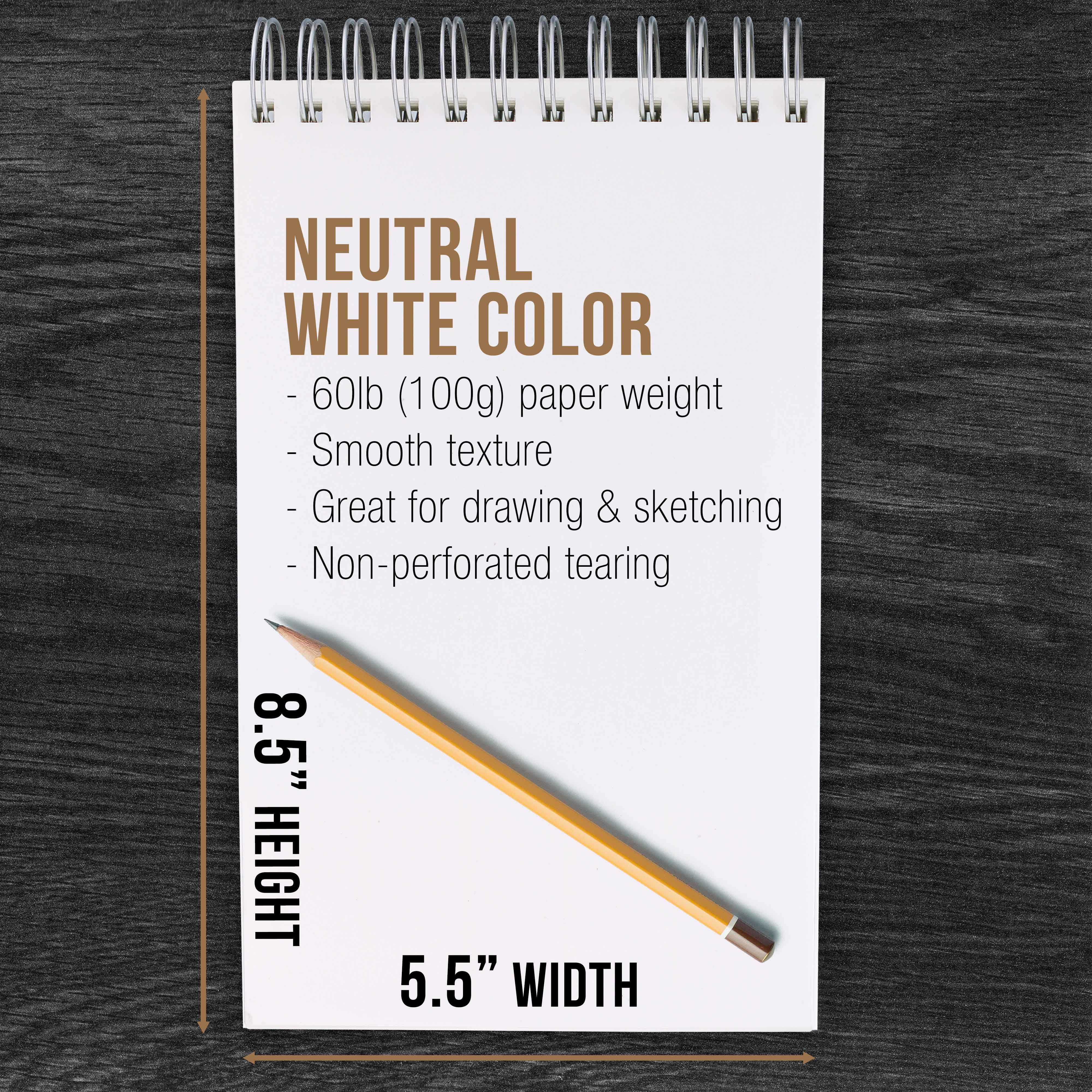 Features:Acid Free, Neutral pH, Spiral Bound Natural White Sheets for Easy Removal. Standard Weight and Versatile Smooth Paper made to Accept all Mixed Media. Ideal for Writing, Drawing & Sketching. Use with Pens, Markers, Pencils and more.