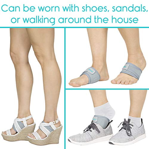 Vive Arch Support Brace (Pair) – Plantar Fasciitis Gel Strap for Men, Woman – Orthotic Compression Support Wrap Aids Foot Pain, High Arches, Flat Feet, Heel Fatigue – Insert for Under Socks (Gray)