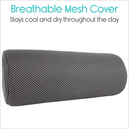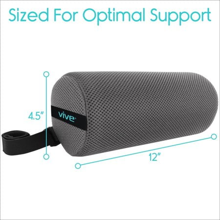 supporting the natural curvature of the spine, the lumbar roll by vive provides optimal support for the lower back. relieving pain, pressure and fatigue, the firm foam lumbar roll promotes proper posture when seated for extended periods of time. lightweight and portable, the cushion is made with a high-density foam with a breathable mesh cover.the lumbar cushion also features an adjustable strap with a quick release buckle to easily secure it to any seat at home or on the go.