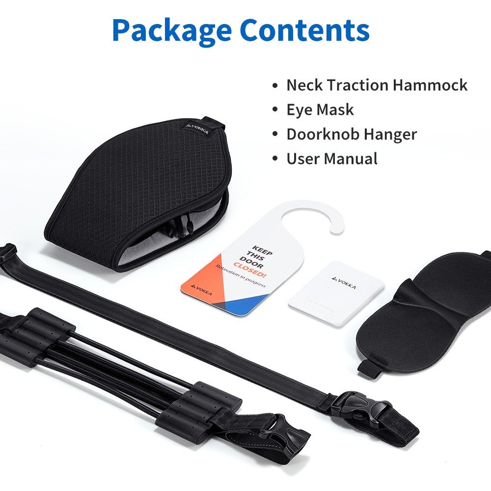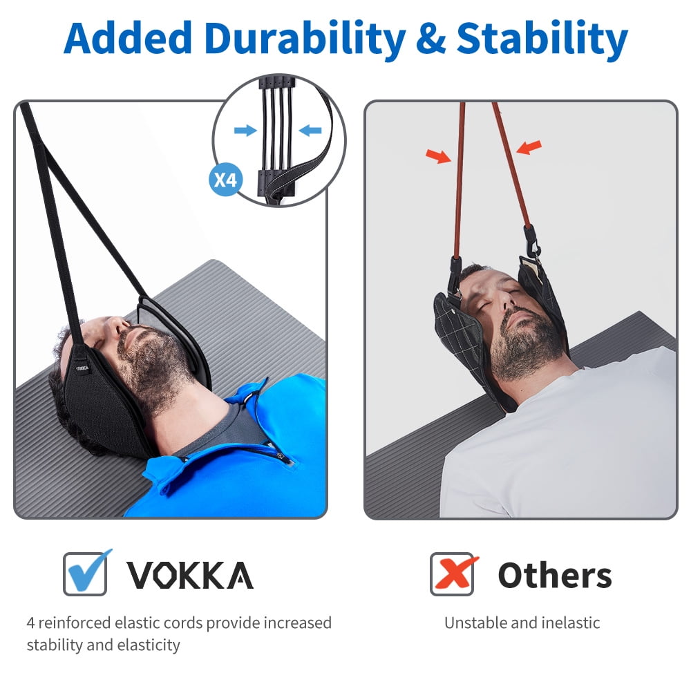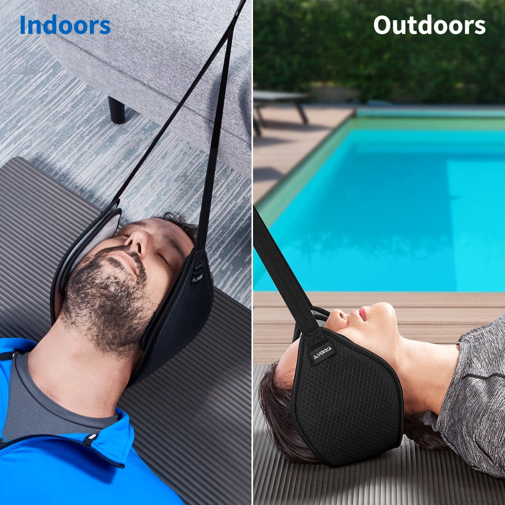 The VOKKA Neck Traction Hammock works by gently pulling your head away from your neck, stretching your neck muscles and reducing spinal compression. Regular usage may help with: