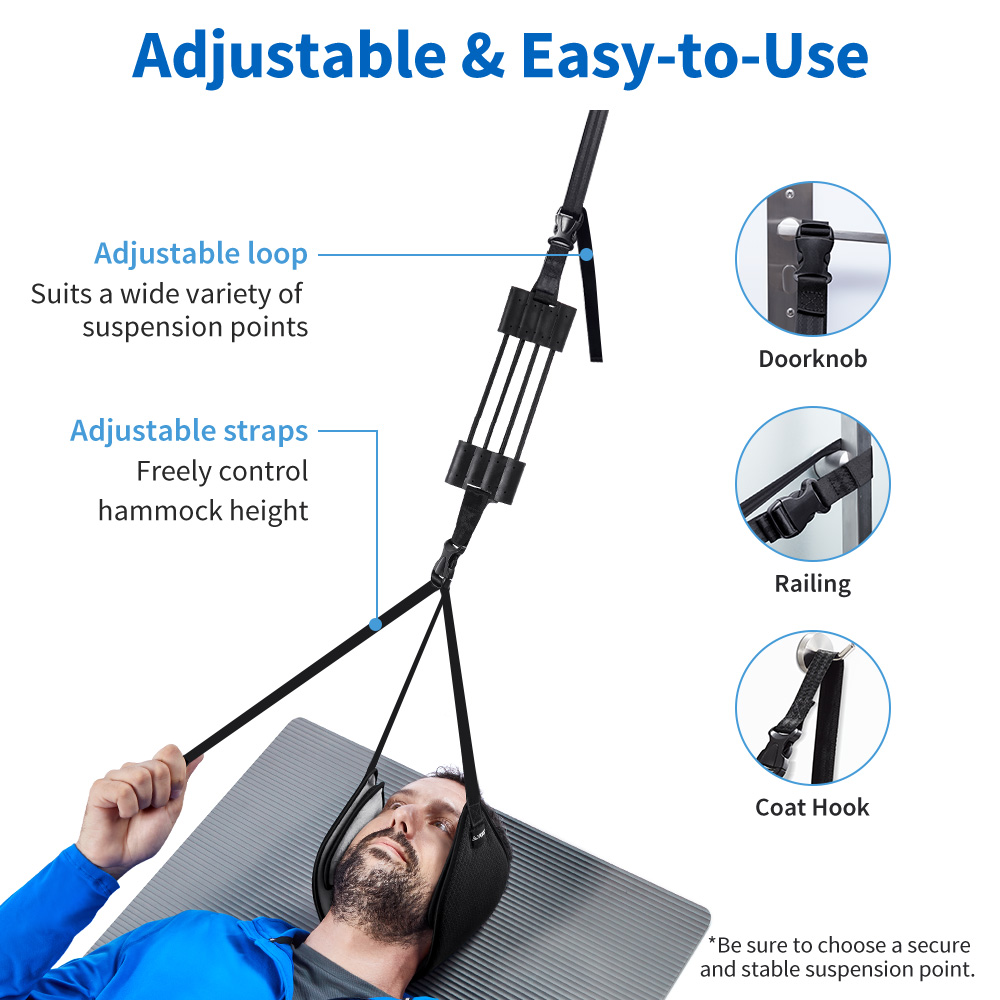 - [Stronger & Safer]: Equipped with four sturdy elastic cords and a reinforced safety band, for added safety and increased flexibility compared to other cervical traction hammocks. High-quality materials and superior stitching help ensure long-lasting durability and comfort.