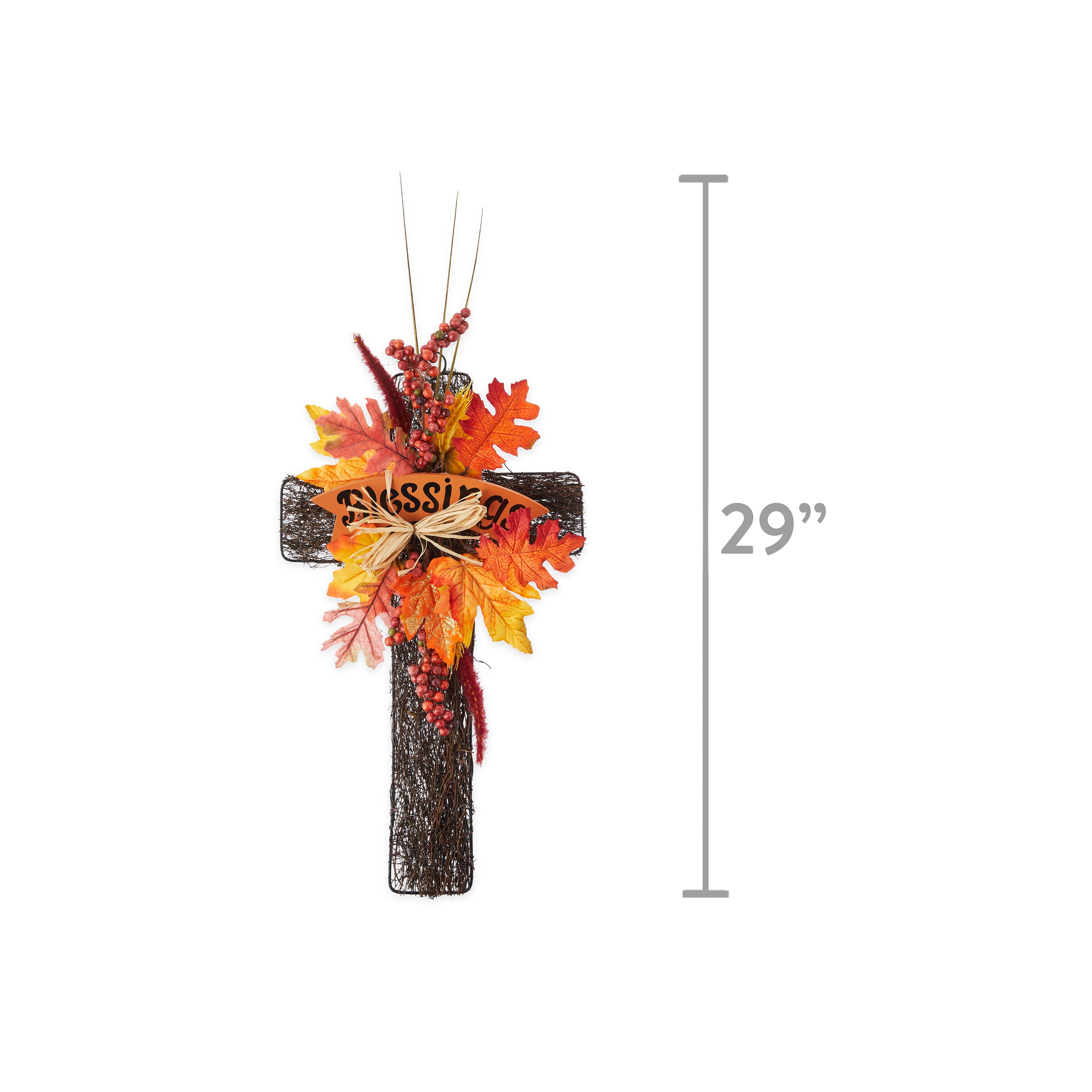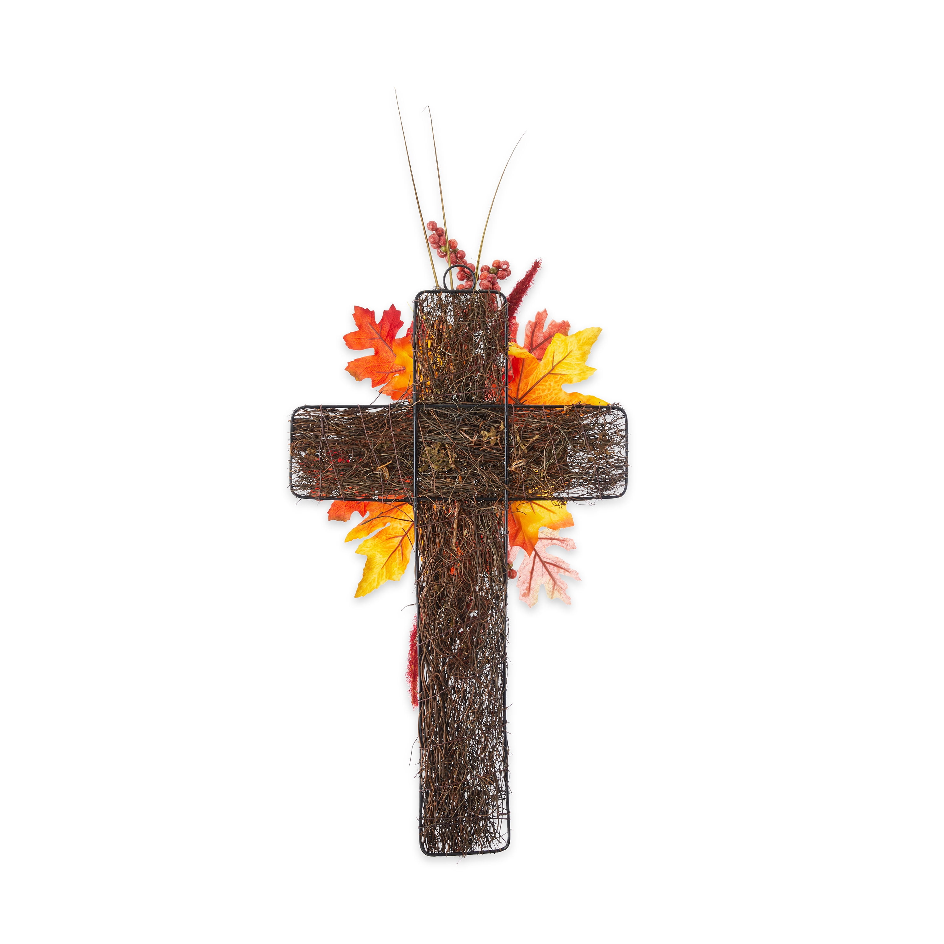Way to Celebrate Floral Cross Blessings Hanging Decoration, 22′, Iron Frame with Grapevine