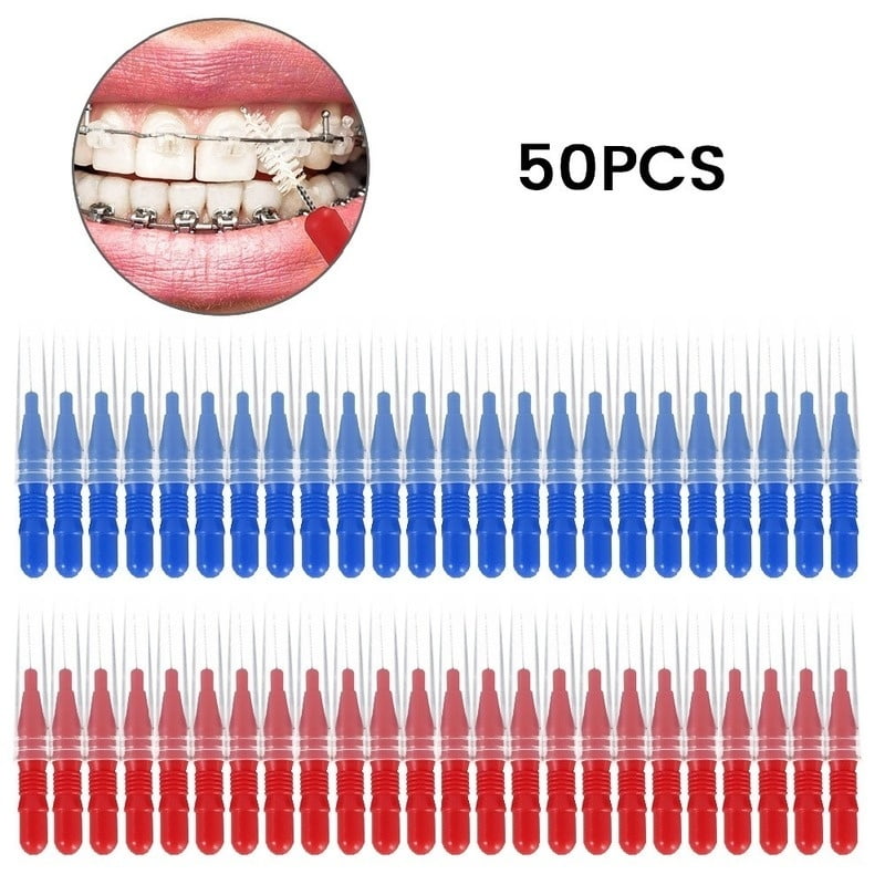 Product DescriptionOur innovative interdental brushes are designed to clean between the teeth and the gums, where the toothbrush cannot reach.Regular brushing with our dental floss brush heads keep teeth and gums cleaner and healthier.Protect plaque, and food between teeth by using our dental floss cleaning head.By cleaning where current toothbrushes cannot reach, you’ll notice cleaner teeth, healthier gums, and a better smell.50/100 huge dental floss cleaning heads, more than the brushes of other leading brands, enough to meet the needs of the entire family!Feature:Material: plastic handle + stainless steel nylon wireProduct size: 11 * 6 * 2cmWeight: 130 gramsUnit: BoxBenefits of using our dental head:1: Comprehensive cleaning of teeth and gums2: Kill and remove food debris3: remove plaque4: Make your teeth white and healthy gumsUser’s Guidance:1: Insert between teeth, interdental spaces, or dental appliances.2: Use soft bristles to move back and forth to remove plaque and food particles.3: After use, please rinse well and close the lidPackaging details:A set of 25 blue and 25red, a total of 50, fixed packaging