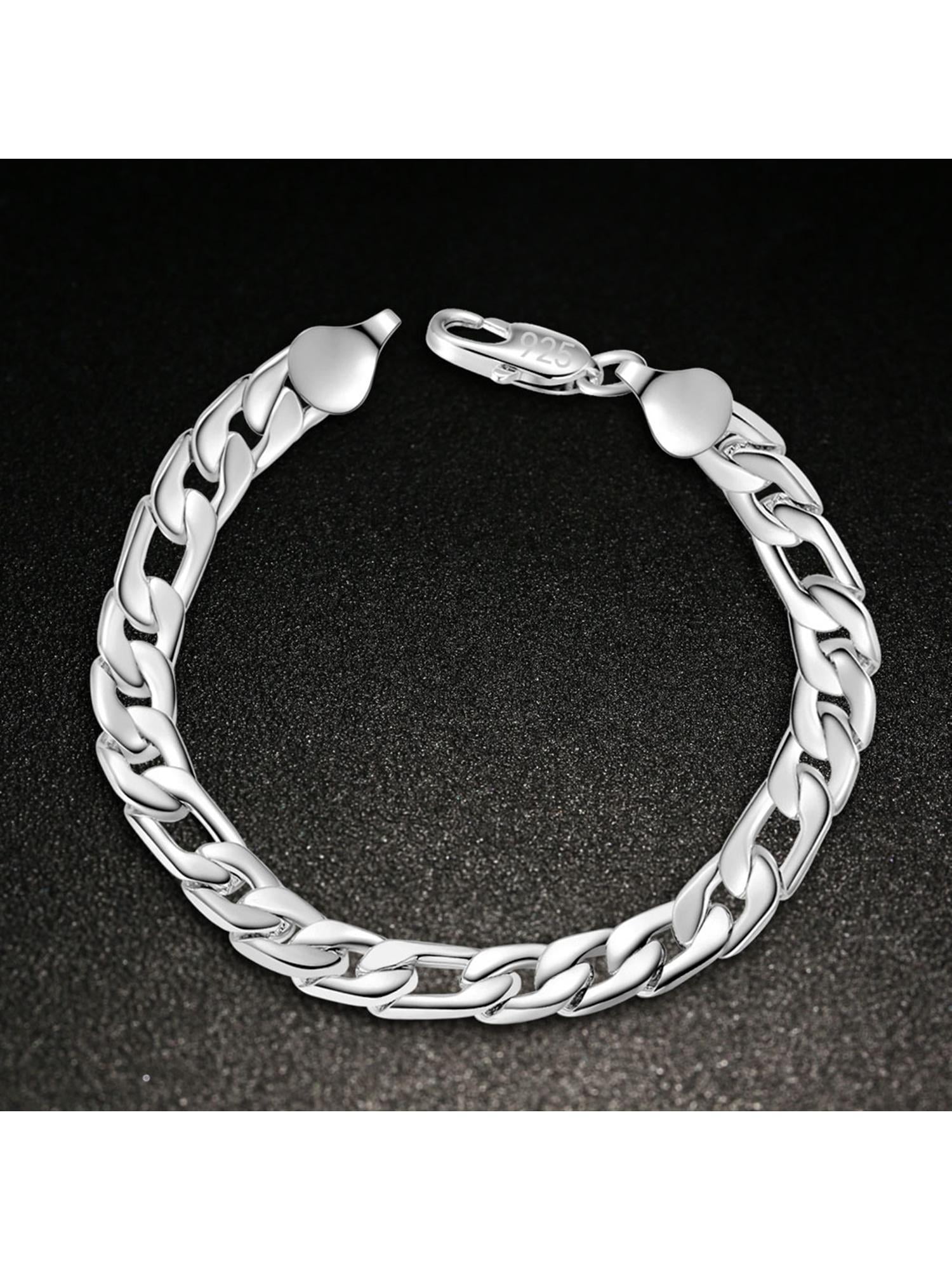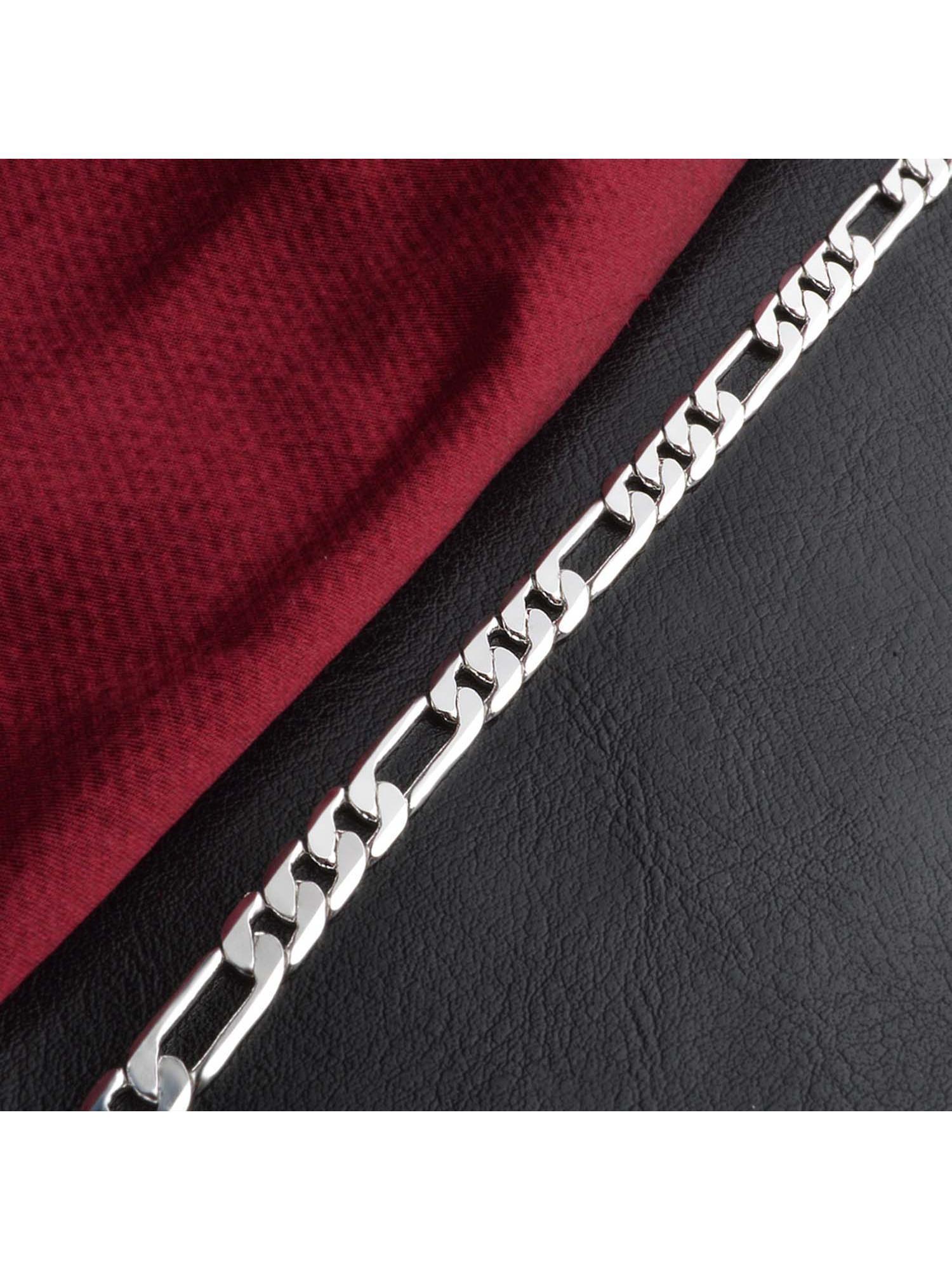 20cm Solid 925 Sterling Silver Italian 5mm Diamonds Cut Figaro Chain Bracelet for Women Gifts
