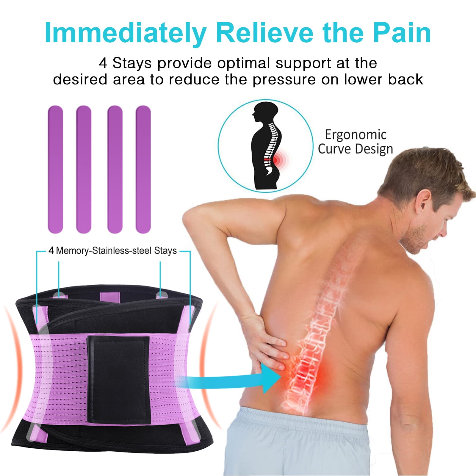 Womens Back Brace for Lower Pain Relief & Herniated Disc Sciatica ,Back Support Belt for Lifting at Work Scoliosis