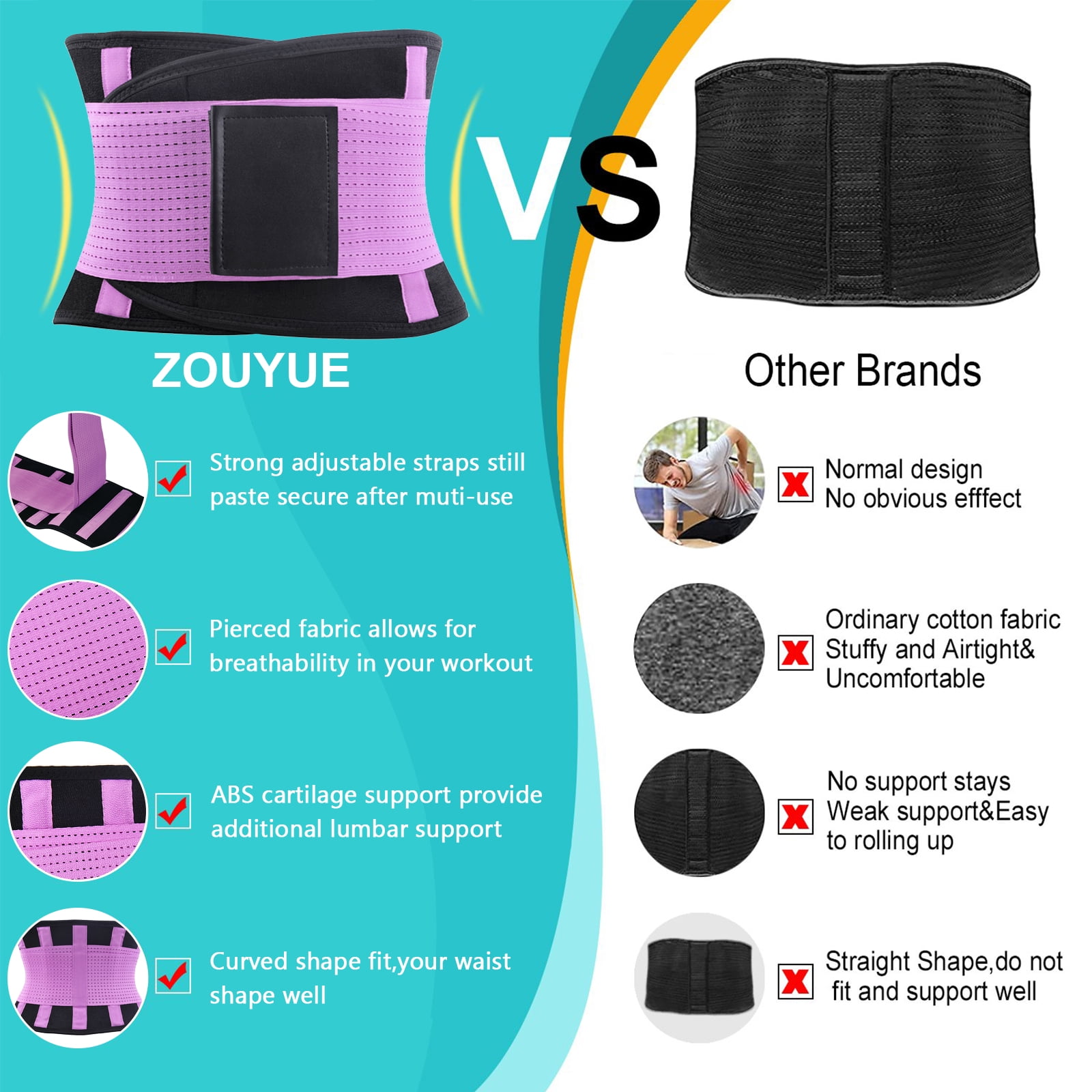 Our waist trimmer belt also smooths your post baby tummy flab and love handles,helping you look slimmer.No more love handles muffin topping over your shorts.Ideal for providing compression and support for after pregnancy,postpartum recovery or post abdominal surgery,c section,lose weight,abdominal strains and weakness,tummy trainer.There is boning stripes through out the waist cinchers that helps to keep your back in the correct position.